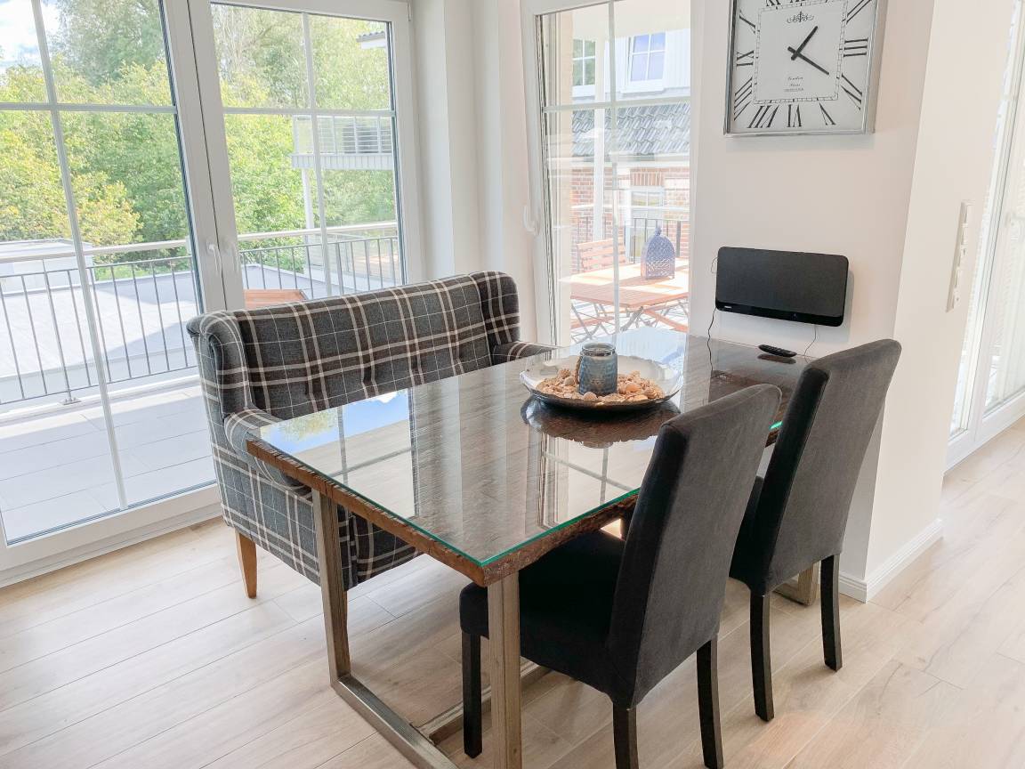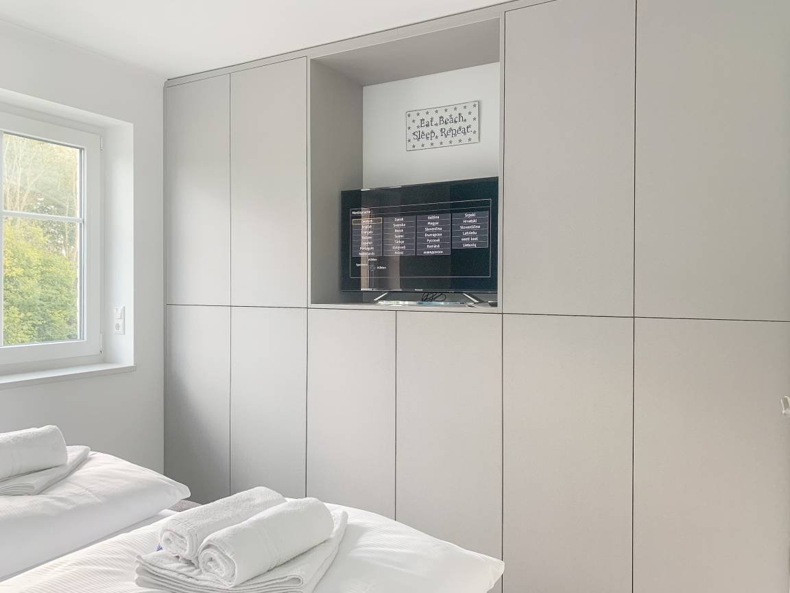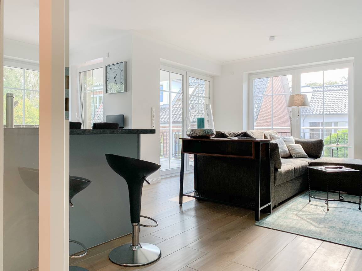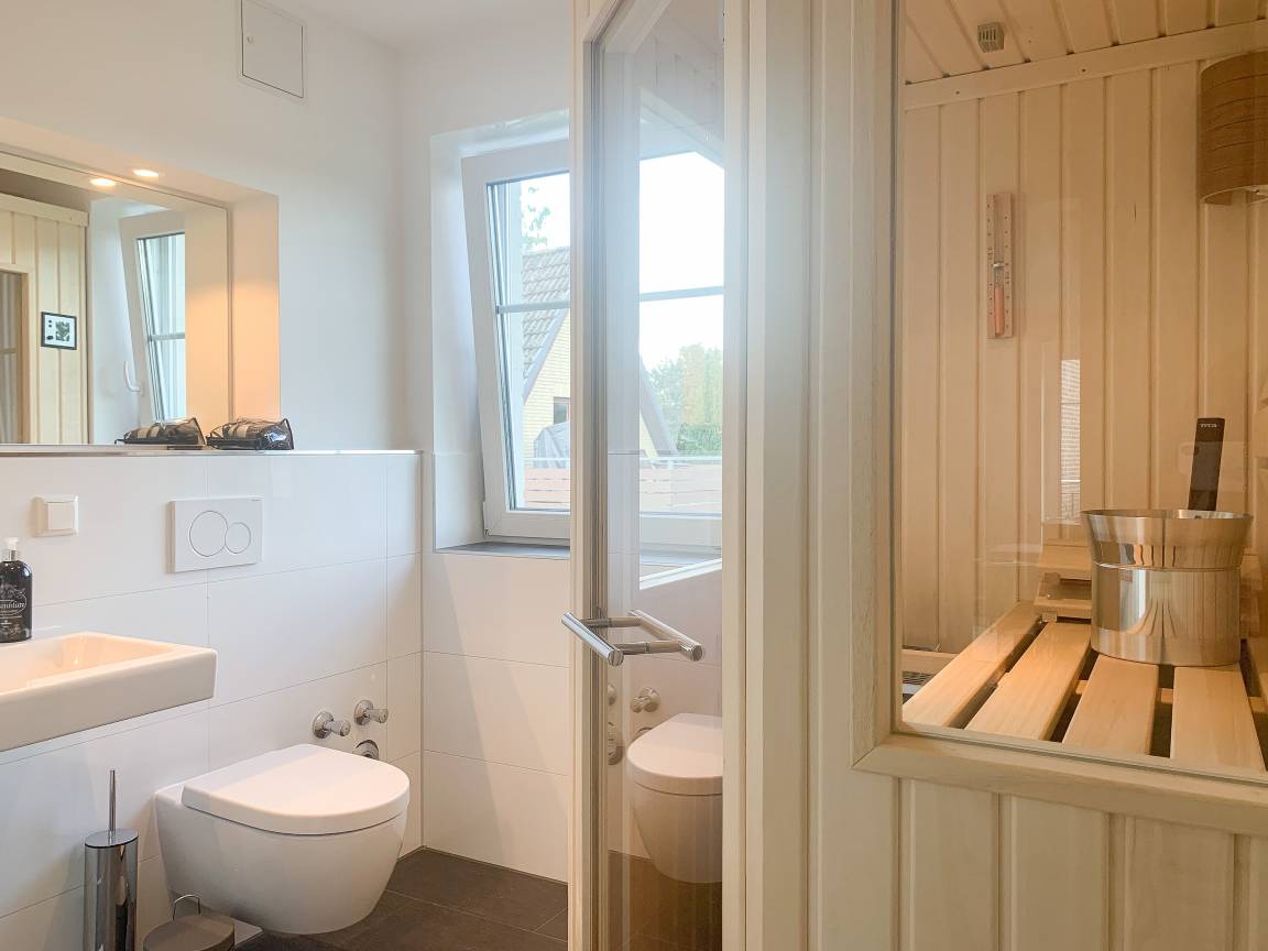 Die äußerst hochwertige Ferienwohnung verfügt über jeglichen Komfort eines Neubaus wie bodentiefe Fensterflächen für helle Räumlichkeiten, Fußbodenheizung für ein angenehmes Raumklima und elektrische Außenjalousien. Mittelpunkt der Wohnung bildet der geschmackvoll gestaltete, sonnige Wohn- Essbereich mit integrierter, bestens ausgestatteter Einbauküche und der großzügig angelegte, zum Teil überdachte Südbalkon. Ein Highlight ist mit Sicherheit die ganz private[nbsp] Sauna, die im modernen Duschbad integriert ist. Es stehen 2 separate Schlafzimmer zur Verfügung, wovon das eine mit einem hochwertigen Boxspringbett, Einbauschrank und TV ausgestattet ist, das andere verfügt über ein mit viel Liebe zum Detail vom Tischler gefertigtes Etagenbett. Die Ferienwohnung ist für Kleinkinder nicht geeignet.