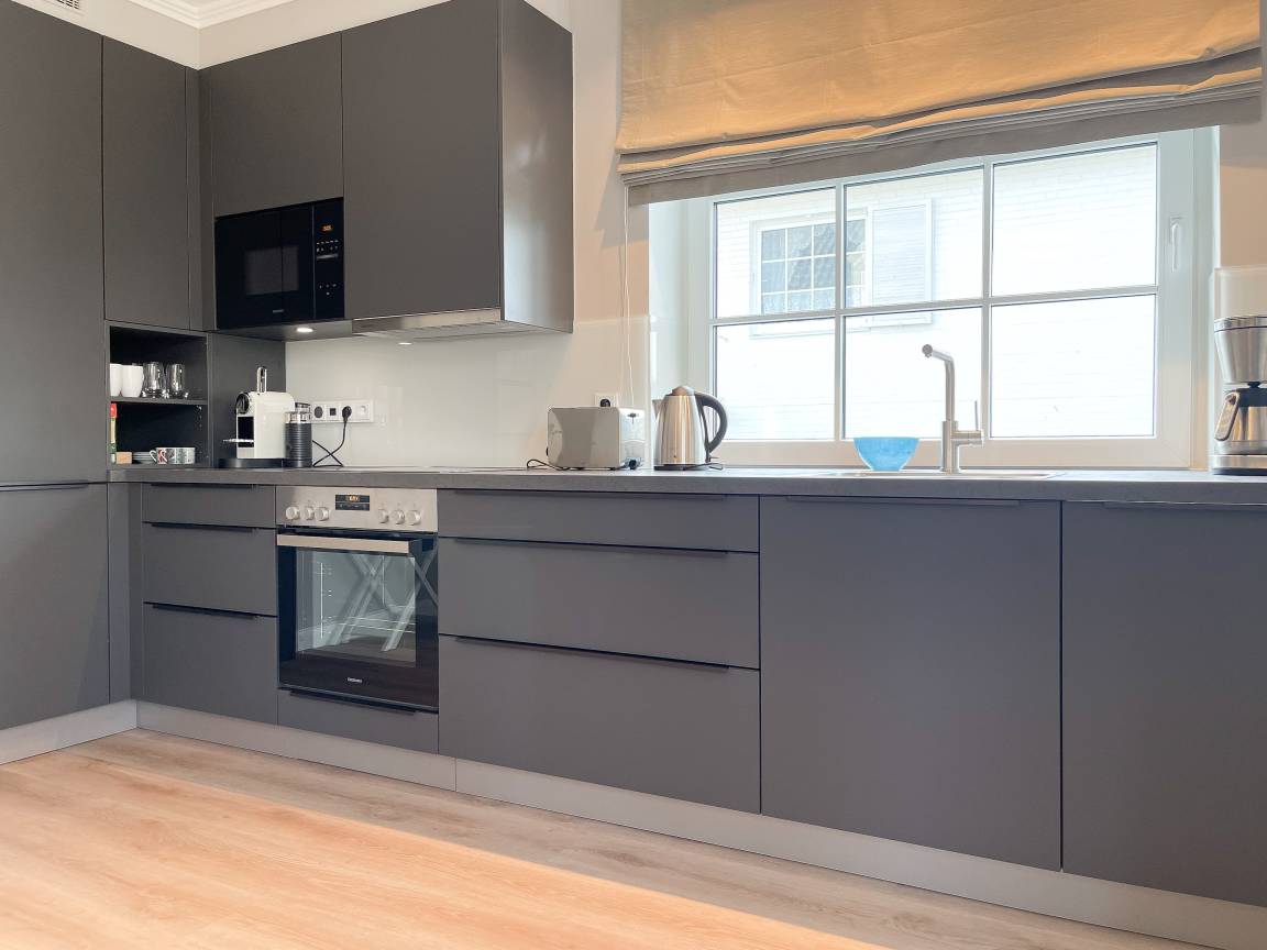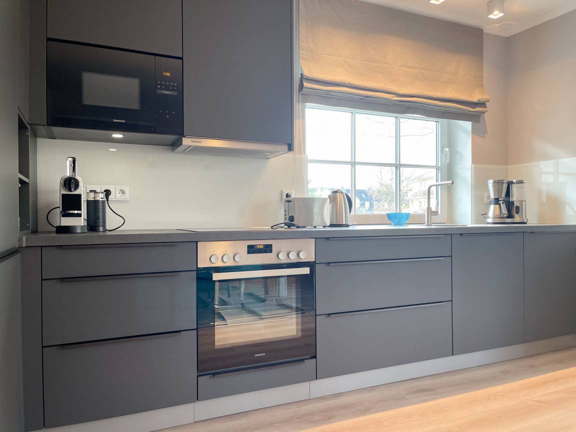 Frisch und aufwendig renoviert und äußerst geschmackvoll eingerichtet in 2024, erwartet Sie der Küstenschatz, um den wohlverdienten Urlaub in großartigem Ambiente zu verbringen. Der Innenarchitektin ist es gelungen, unter Verwendung warmer Farben, hochwertigem Mobiliar und passgenauen Einbauten einen hohen Wohnstandard zu schaffen, der höchsten Ansprüchen genügt. Ein Highlight ist der großzügige, umlaufende Eckbalkon in Nordwestausrichtung mit herrlichem Blick in den Kurpark, mit Sonnenschein vom Nachmittag bis zum Sonnenuntergang. Der stilvolle Wohnbereich ist mit einem Schlafsofa, TV und Bluetooth-Lautsprecher ausgestattet und der anschließende Essbereich bietet ausreichend Raum für 4 Personen. Die äußerst hochwertige Designküche in perfekter Ausstattung fügt sich wunderbar in den Wohnraum ein und verfügt unter anderem über Spülmaschine, Backofen, Mikrowelle, Cerankochfeld, Radio und vieles mehr. Das Schlafzimmer ist mit einem Doppelbett (160x200) sowie einem passgenauen Einbauschrank mit integriertem TV eingerichtet. Das Fenster lässt sich mittels Rollo verdunkeln. Das moderne Bad ist mit Waschtisch, WC und Duschwanne ausgestattet. WLAN steht selbstverständlich zur Verfügung.