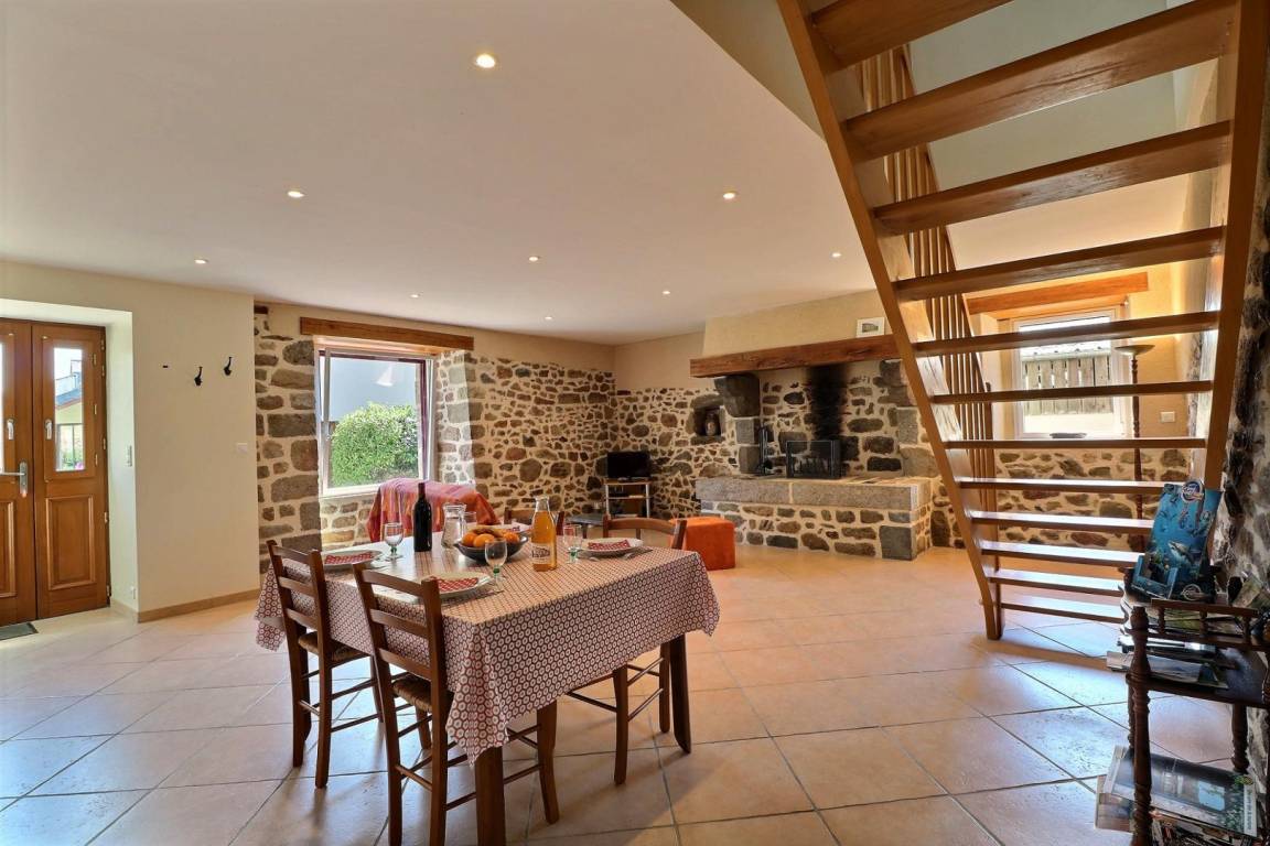 Im EG: Wohnbereich Esszimmer/Wohnzimmer mit Kamin - Schlafcouch - Einbauküche - WC. Im Stockwerk: 1 Schlafzimmer (1 Doppelbett) - 1 Schlafzimmer (2 Einzelbetten) - Bad mit Dusche - WC. Luftwärmeheizung Fußboden. Kurtaxe inklusive.