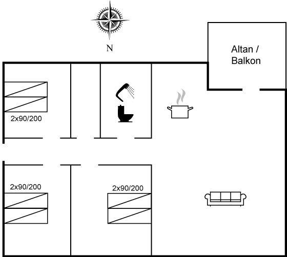 SchlafverhältnisseDie Schlafplätze verteilen sich auf 3 Schlafräume. 6 Schlafplätze in Doppelbetten. Ferner steht ein Kinderbett zur Verfügung.