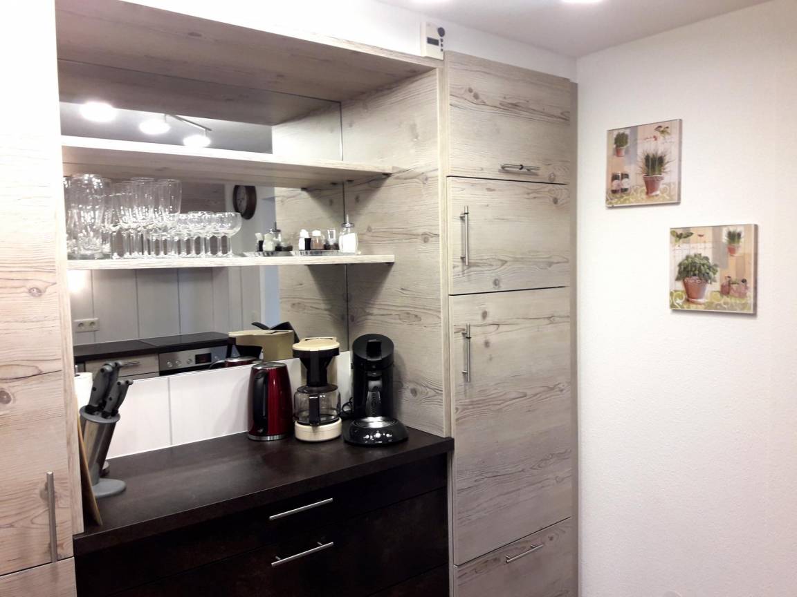 Layout : In der 1. Etage: Wohnzimmer mit Doppelschlafcouch(170 x 200 cm), TV(Flatscreen, Satellit), Esstisch, Ofen(Holz) , Aufenthaltsraum(Gemeinschaftliche Nutzung mit anderen Gästen), Küche mit Wasserkocher, Toaster, Kochherd(4 Kochplatten, Ceranfeld), Dunstabzugshaube, Kaffeemaschine, Backofen, Kombi-Mikrowelle, Geschirrspüler, Kühl-/Gefrierkombination , Schlafzimmer mit Doppelbett, TV(Flatscreen, Satellit) , Schlafzimmer mit Doppelbett , Badezimmer mit Dusche, Waschbecken, Toilette