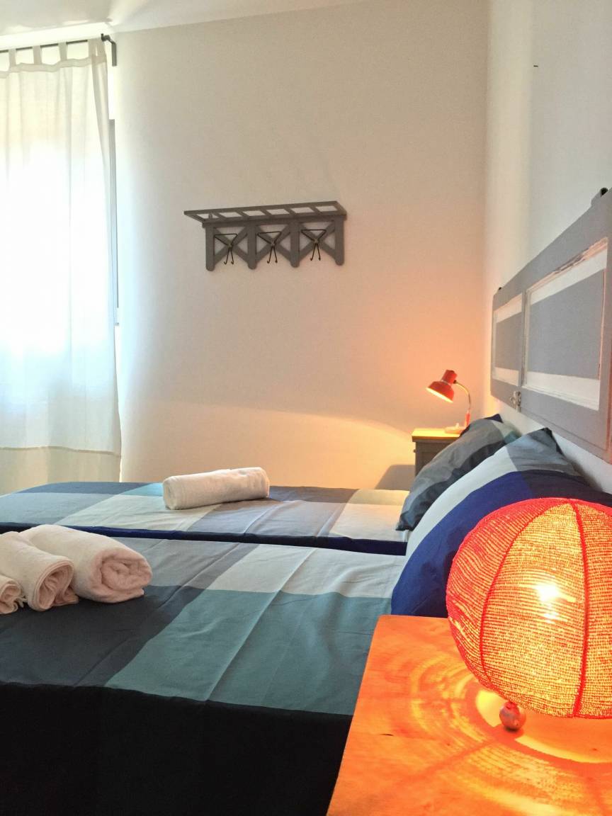 Schlafzimmer 2 (18 m²): zwei Einzelbetten (Breite: 80m, Länge: 190m), WiFi Internet, tragbarer Ventilator, Schreibtisch.