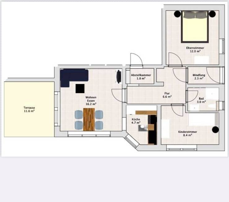 55qm für 2 Erwachsene & 2 Kinder (und ein Baby) oder 4 Erwachsene.