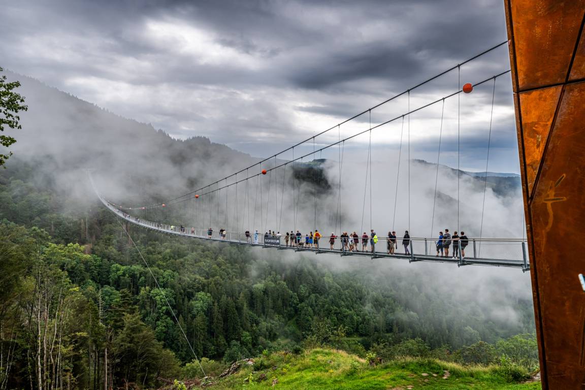 The Todtnau mountain world combines adrenaline, nature and winter fun in a unique setting. A real highlight is the Blackforestline - a 120-metre-high suspension bridge that offers spectacular views of the thundering Todtnau waterfall and gives you goosebumps. Action-packed adventures await downhill fans in the Todtnau Bike Park, where rapid descents and challenging trails provide adrenaline rushes. Those who prefer a more leisurely pace can explore the waterfall on well-maintained hiking trails or on a relaxing walk. In the cold season, the Nordic Center at Notschrei is transformed into a paradise for cross-country skiers: perfectly groomed trails, fantastic snowy landscapes and a practical ski rental service make the winter excursion perfect.