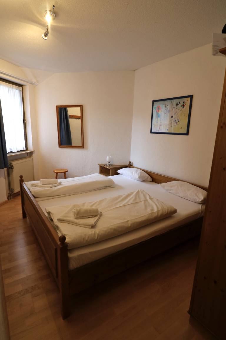 Das Schlafzimmer hat ein Doppelbett und im Wohnzimmer steht eine Schlafcouch für 2 Personen.