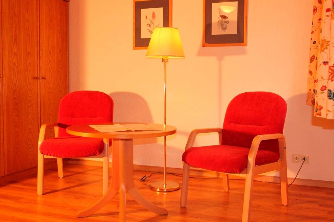 Die Ferienwohnung ist behaglich eingerichtet. Ihnen steht eine geräumige und gut ausgestattetet Wohnküche zur Verfügung. In der Wohnküche gibt es einen Esstisch, Sessel, Sofa und TV-Gerät. Zudem befindet sich dort ein Doppelbett. Des Weiteren gibt es ein separates Wohn-Schlafzimmer mit Doppelbett und Sofagarnitur. Das Bad verfügt über eine Dusche. Ein Gäste-WC ist ebenfalls vorhanden.