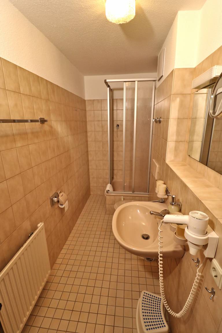 - Bad mit Dusche, Waschbecken, WC und Föhn