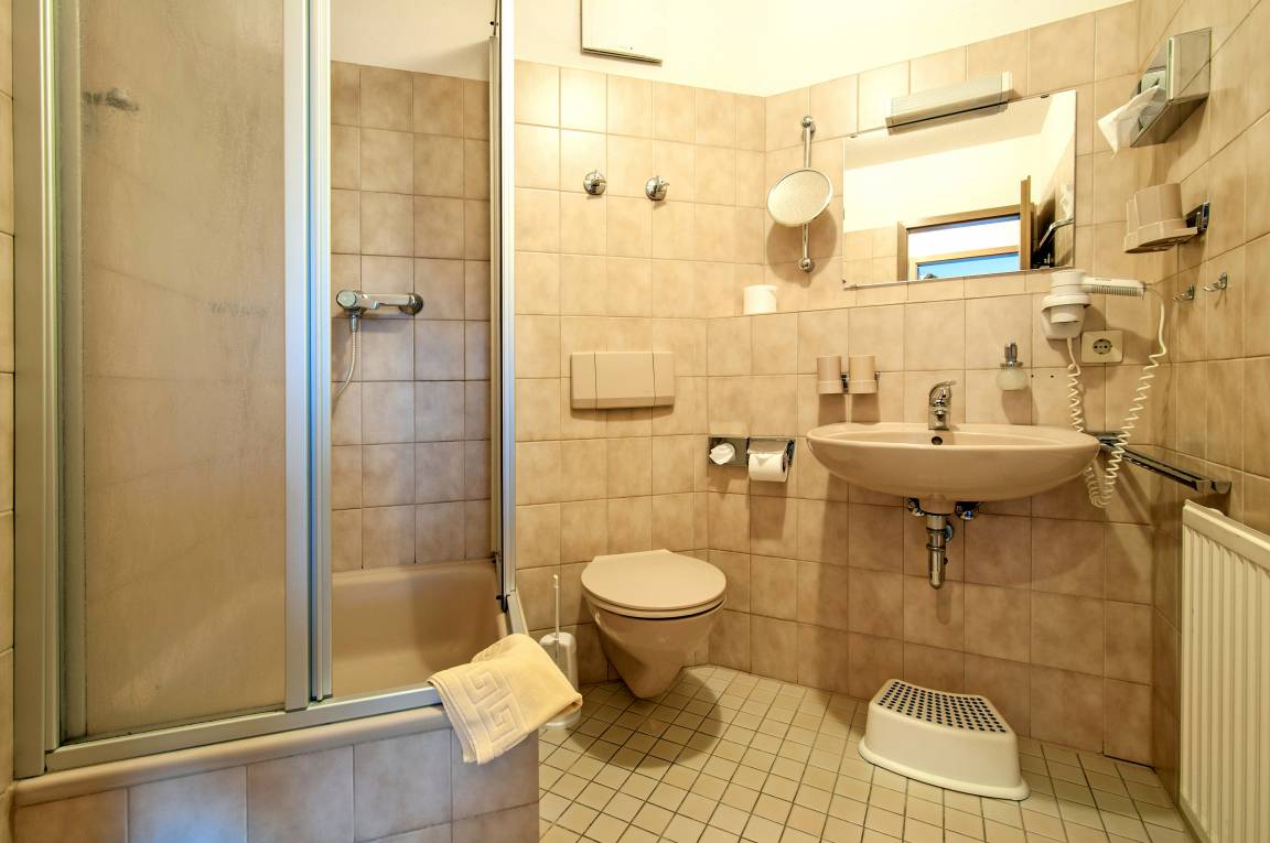 - Bad mit Dusche, Waschbecken, WC und Föhn