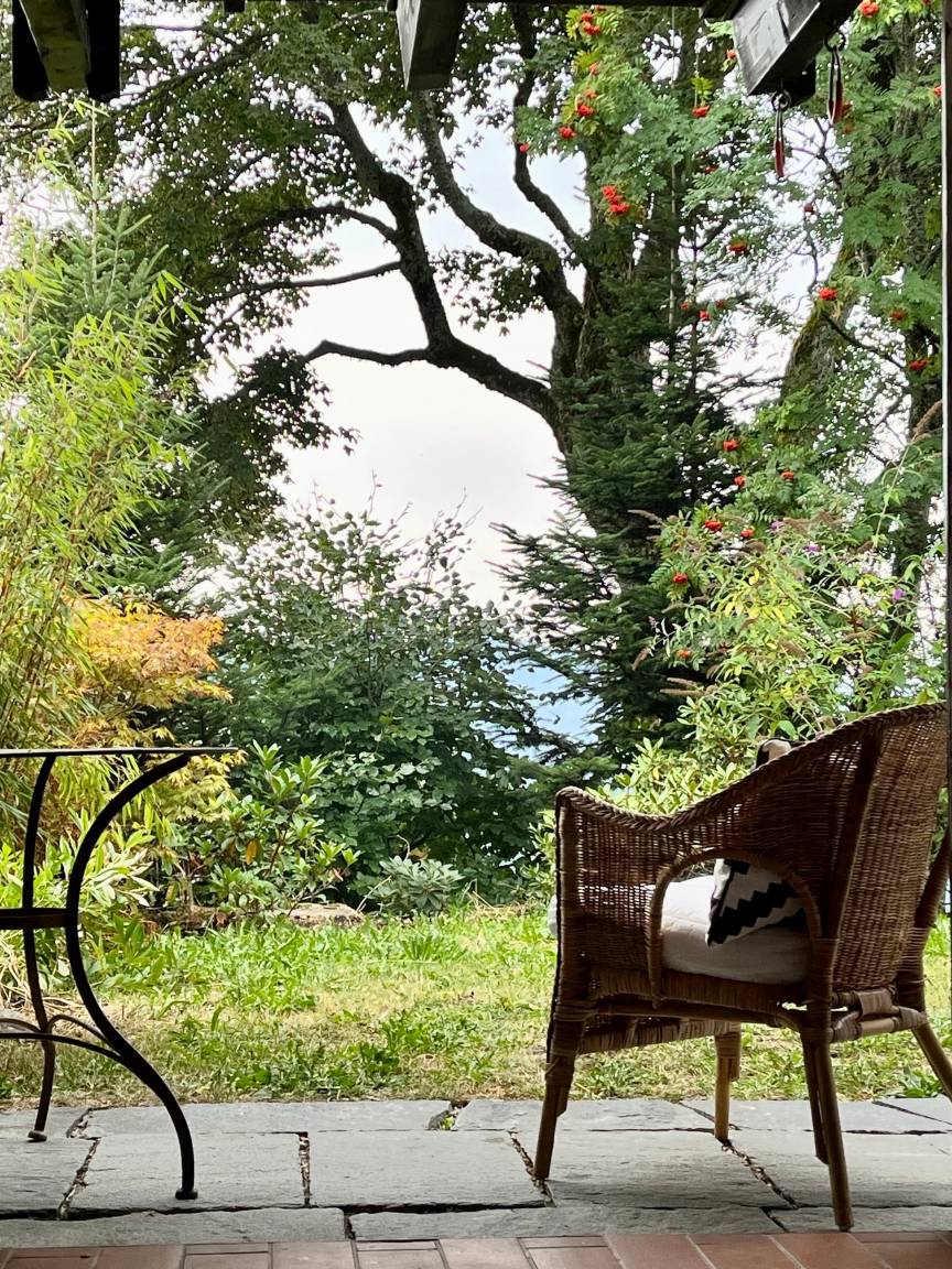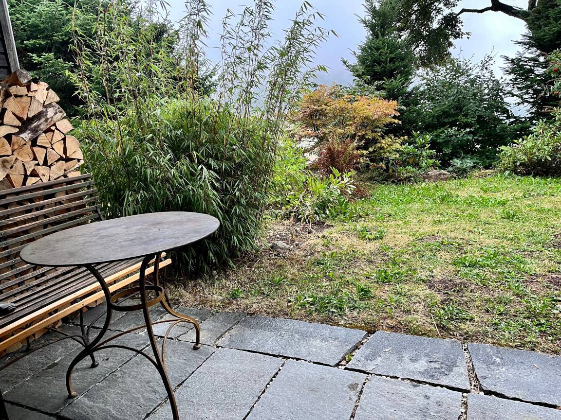 - Eine Terrasse mit Gartenanteil - der großzügige Garten wird gemeinsam mit dem Nachbarhaus genutzt