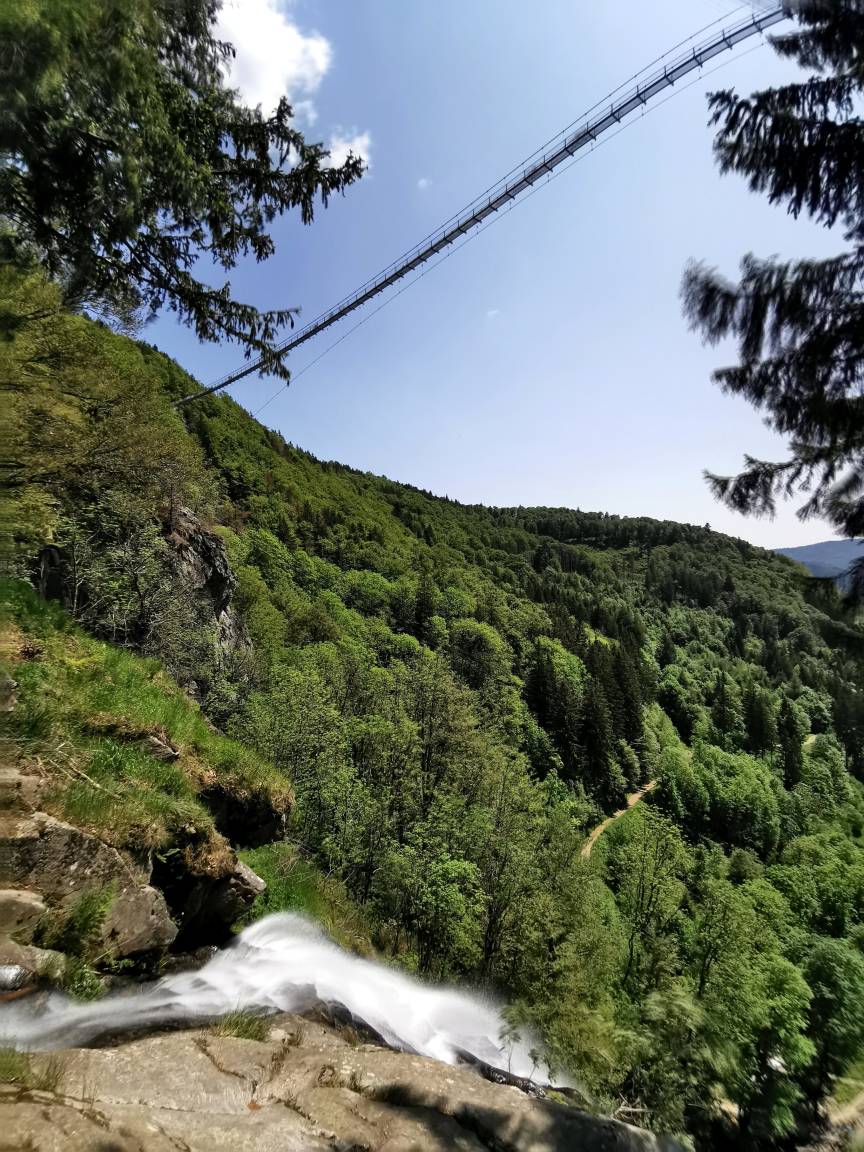 Ein besonderes Highlight ist die Hängeseilbrücke "Blackforestline", die spektakuläre Ausblicke bietet – unter anderem auf die bekannten Todtnauer Wasserfälle.