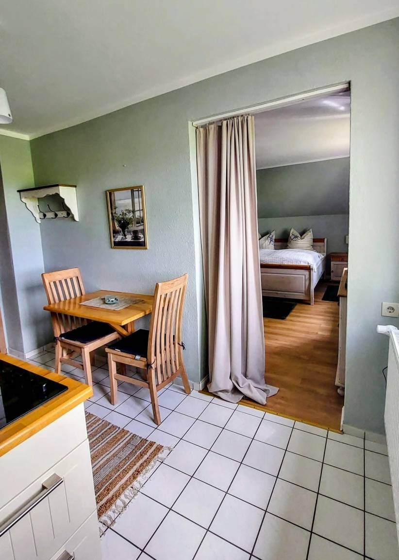 In unserem Gästehaus "Wilhelm Andresen" befindet sich im ersten Stock unsere Ferienwohnung" Volker". Sie besteht aus einem Zimmer als Wohn- und Schlafbereich, sowie separater Küche und einem Bad mit Dusche.