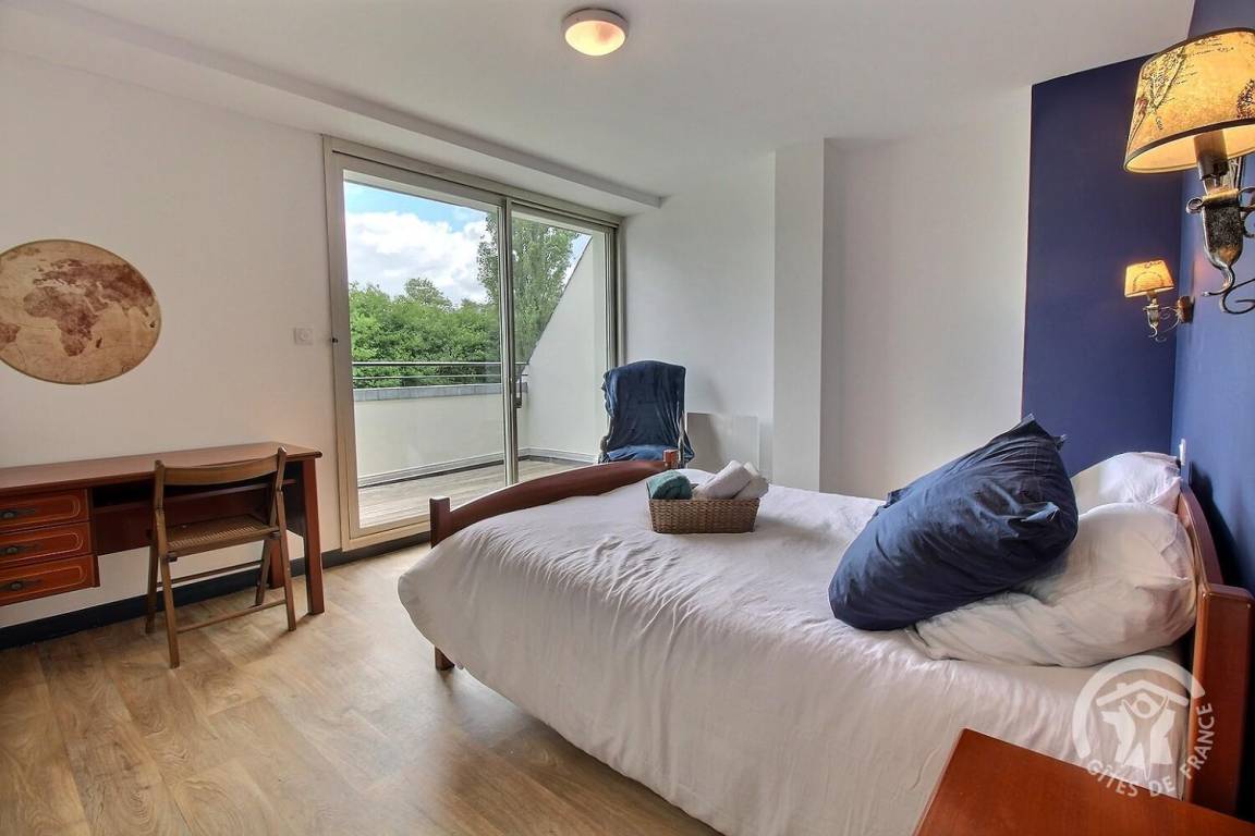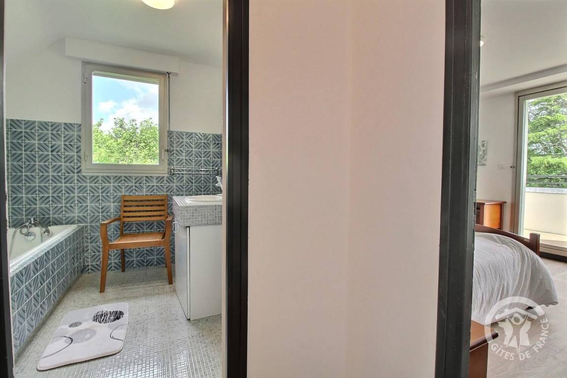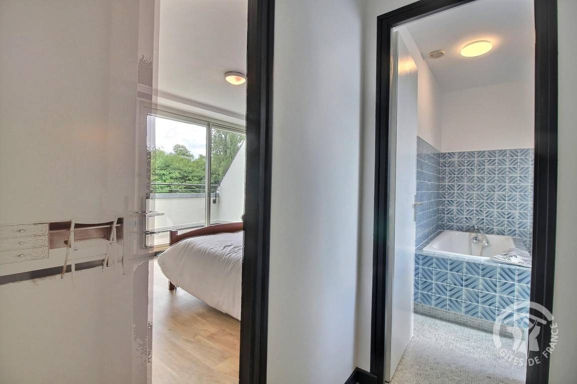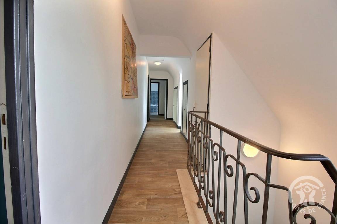 1 großer Flur führt zu 4 Schlafzimmern, jedes mit eigenem Badezimmer (Badewanne und Toilette): 4 Betten 140x190. 3 Schlafzimmer haben eine Balkonterrasse.
