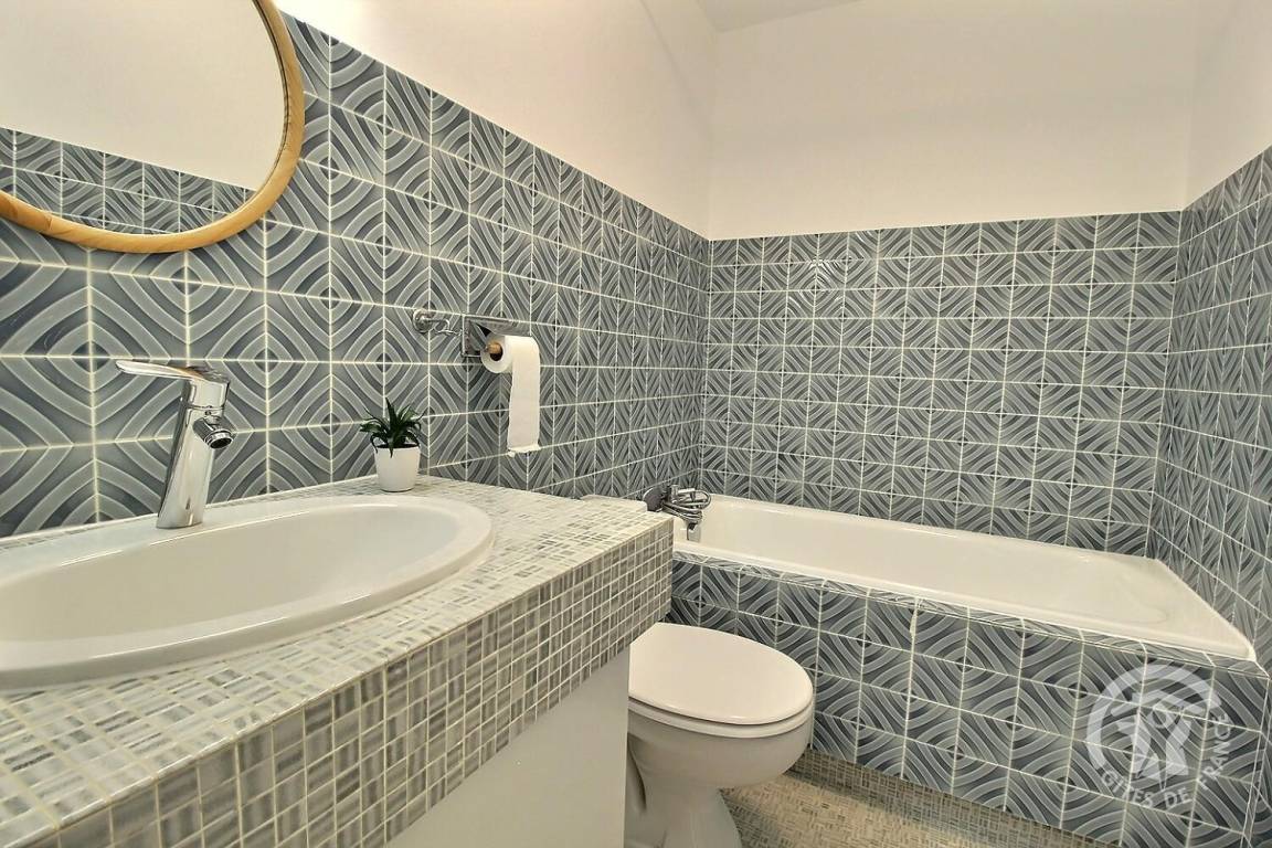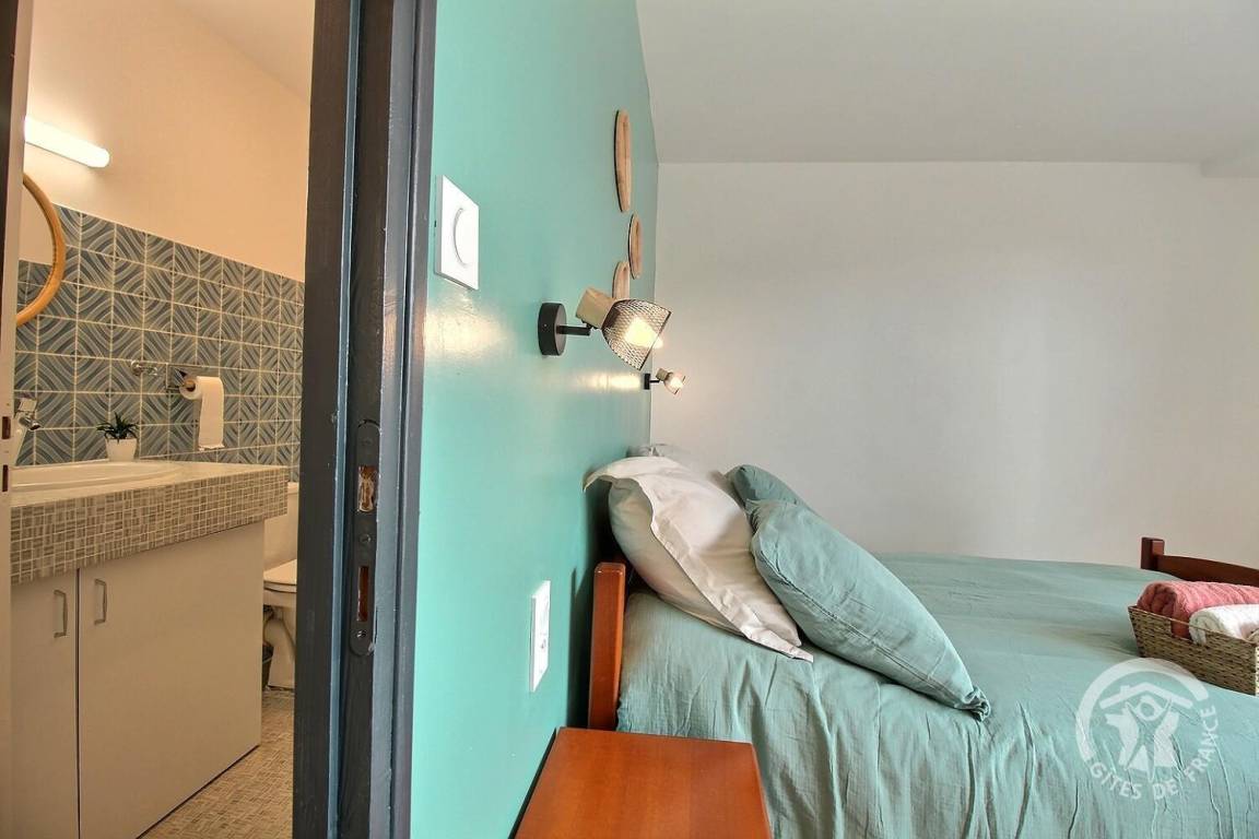 Eingangshalle, gut ausgestattete Einbauküche führt zu einem großen Wohnzimmer, 1 Master-Suite mit Terrasse (1 Bett 140x190) und einem angrenzenden Schlafzimmer (2 Betten 90x190) mit Badezimmer (Dusche und WC). Eine weitere separate Toilette mit Waschbecken.