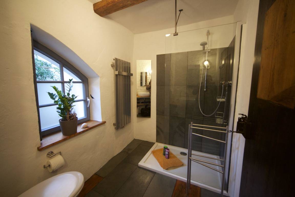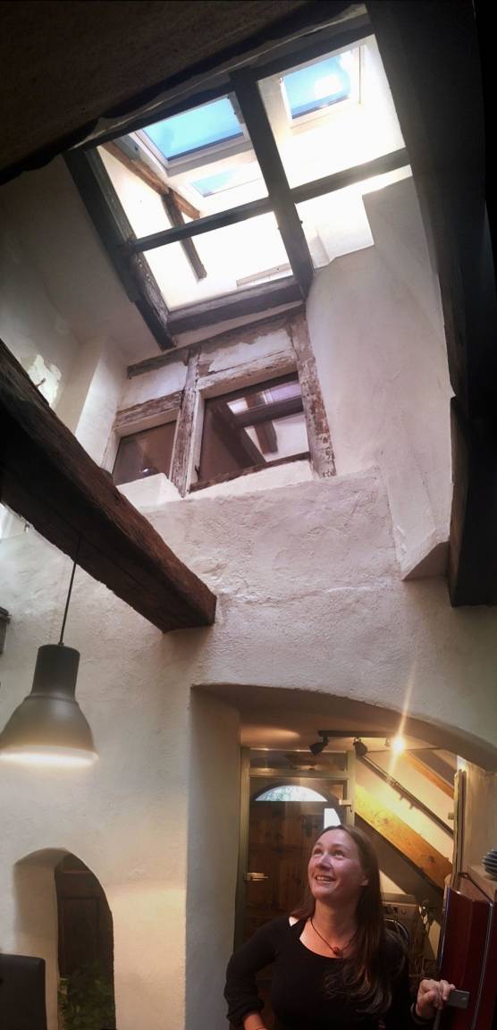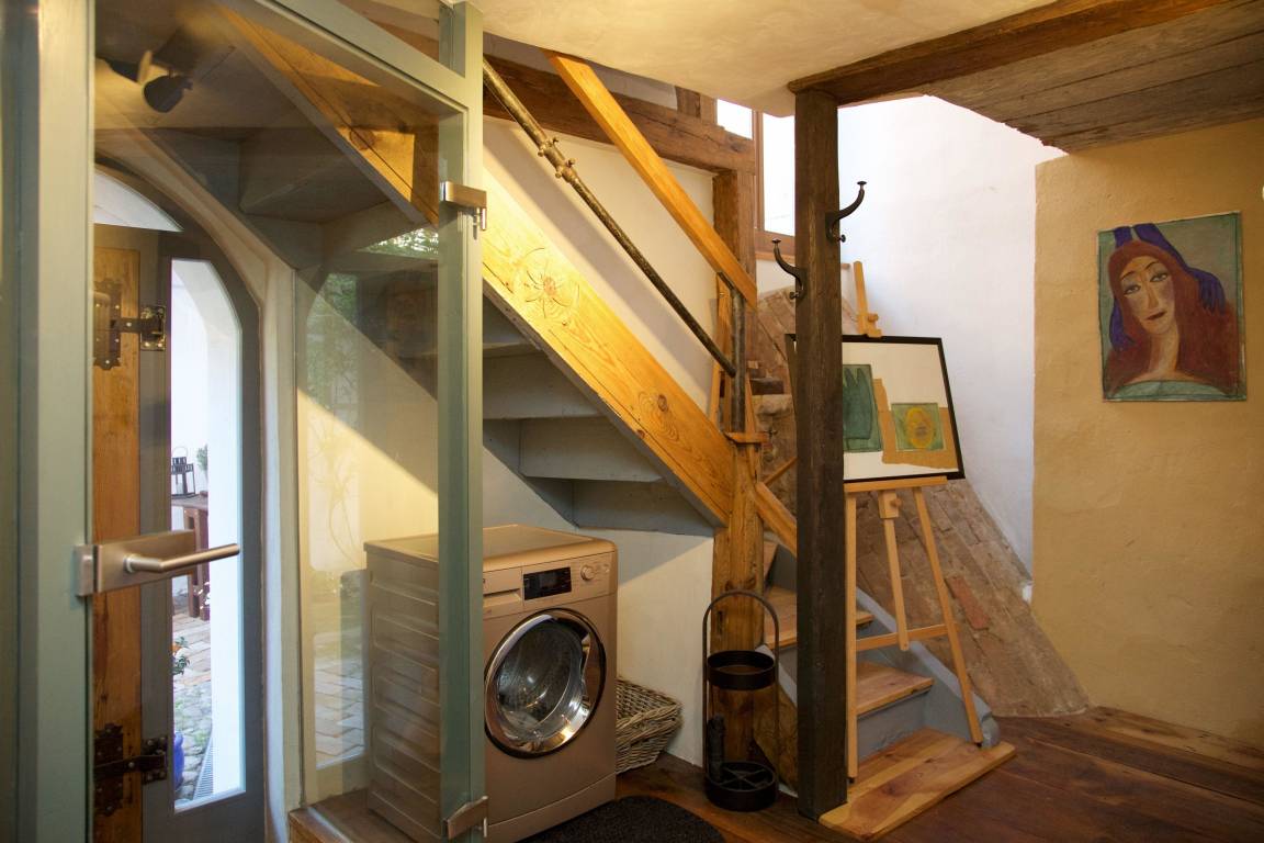 Einzigartiges Kulturdenkmal aus dem Jahr 1530 mit herausragenden Entdeckungen aus dieser Zeit, die in liebevoller Handarbeit geborgen, gesichert und restauriert wurden. Entdecken Sie die bemerkenswerten figürlichen und floralen Wandmalereien. Die farblich gestaltete Holzdecke sowie die uralten Holzdielenböden, denen bewusst die Spuren der Zeit belassen wurden. Das Eingangsportal zur historischen Küche wurde ebenfalls geborgen und an gleicher Stelle ist auch heute die modern designte Küche mit allem Komfort platziert.