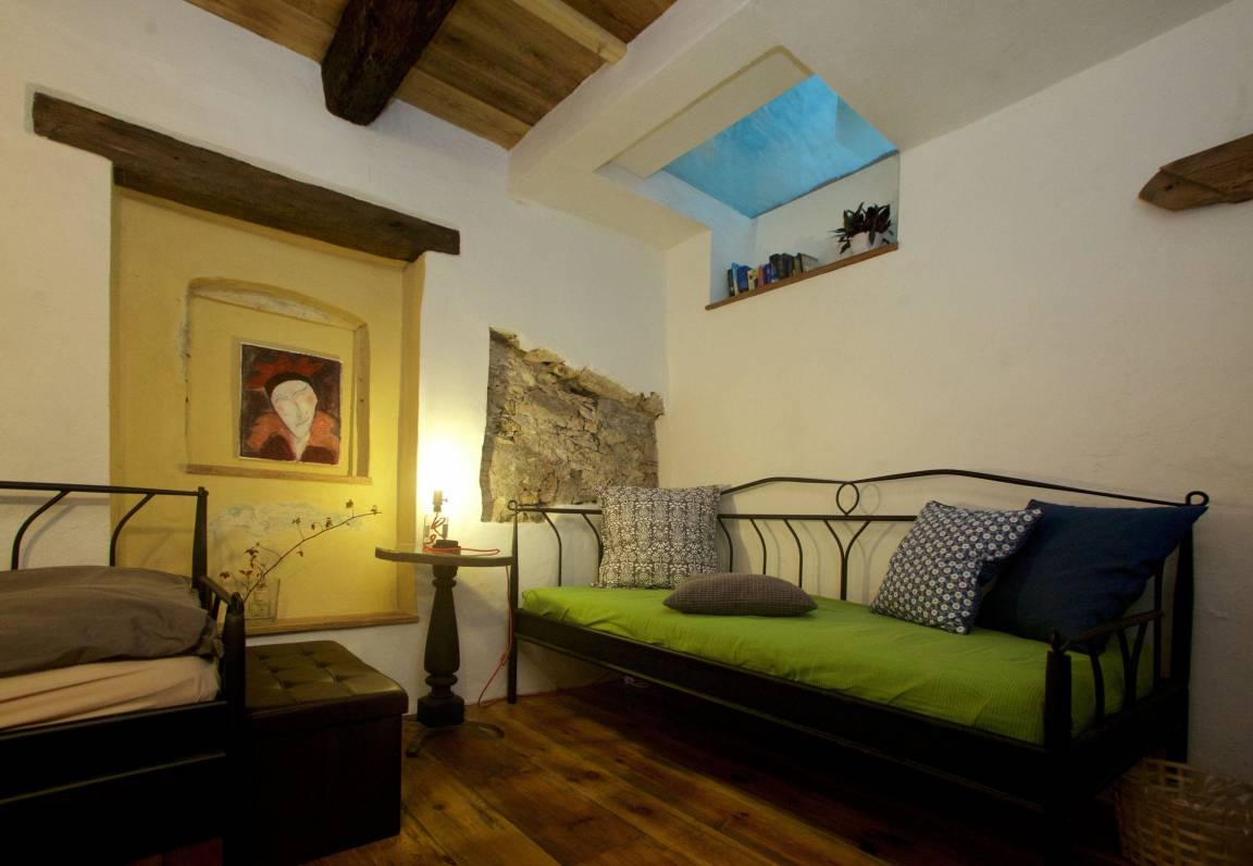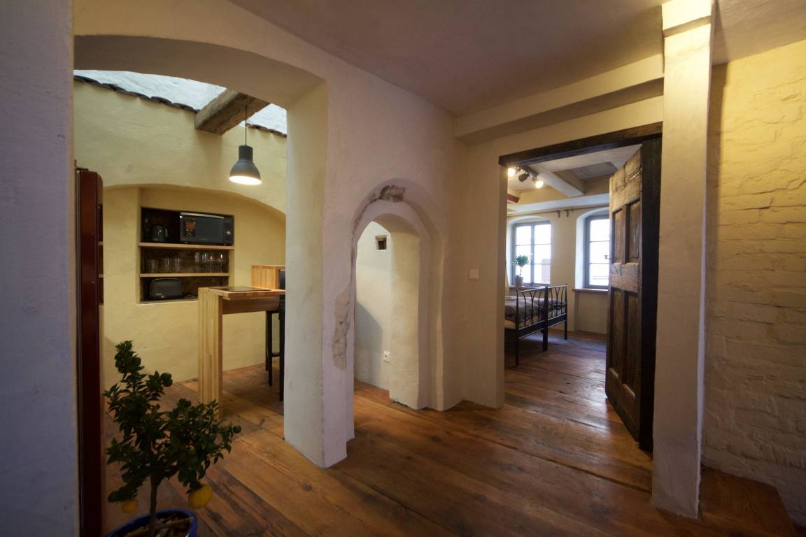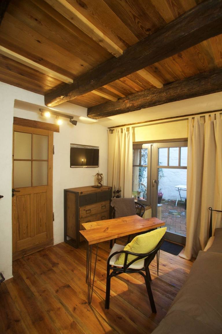 Zur Vermietung steht ein Apartment in einem sanierten Gebäude aus dem 16. Jahrhundert mit originaler Wandmalerei aus der Renaissancezeit, Holzbalkendecke und historischer Dielung