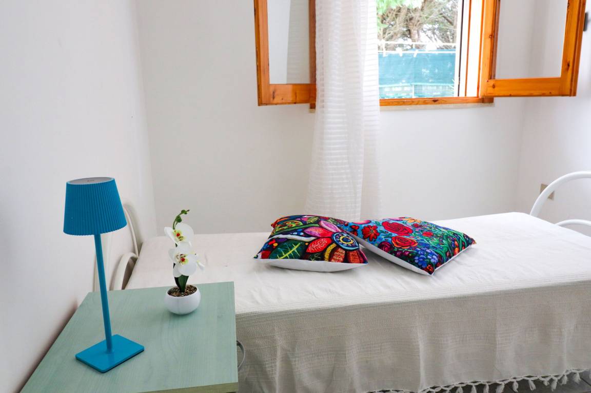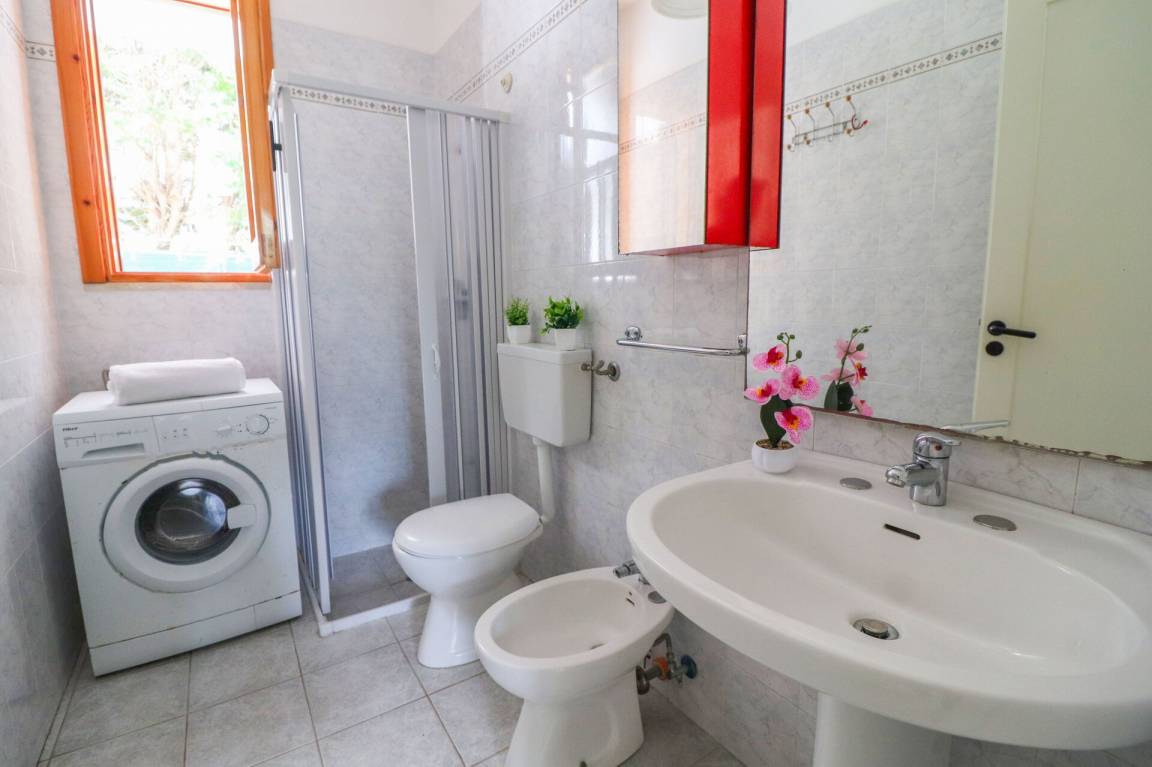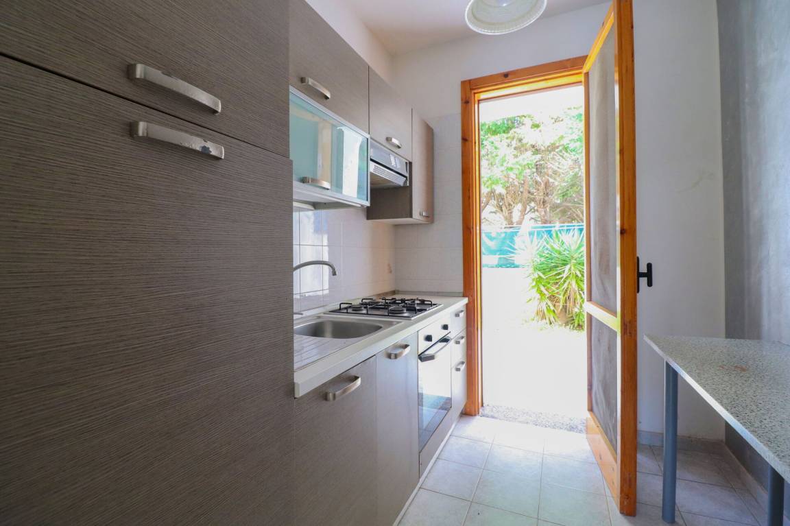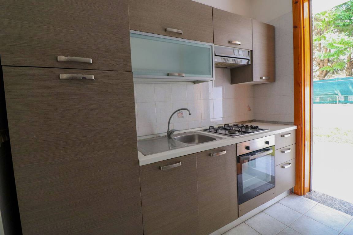 Wohnküche: gut ausgestattete Küche, Esstisch (Personen: 6), Kühlschrank, Tiefkühler, Herd, Ofen, Doppel-Schlafsofa, WiFi Internet, Klimaanlage, TV, Ausgang auf den Garten.