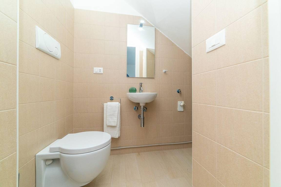 Villetta Annamaria verfügt über 2 Badezimmer. Ein komfortables Servicebadezimmer im Erdgeschoss und ein schönes Badezimmer im ersten Stock, mit Dusche, kompletter Sanitärausstattung, Willkommensset mit Shampoo und Duschgel, außerdem finden wir einen Haartrockner und einen beleuchteten Spiegel.