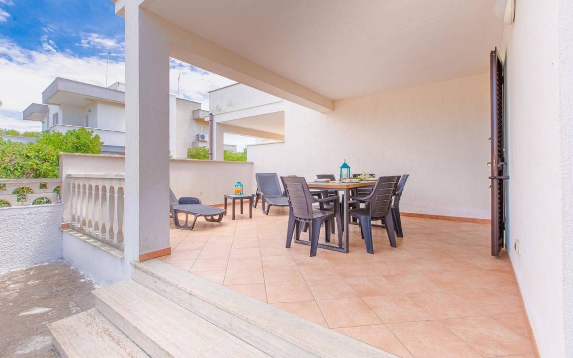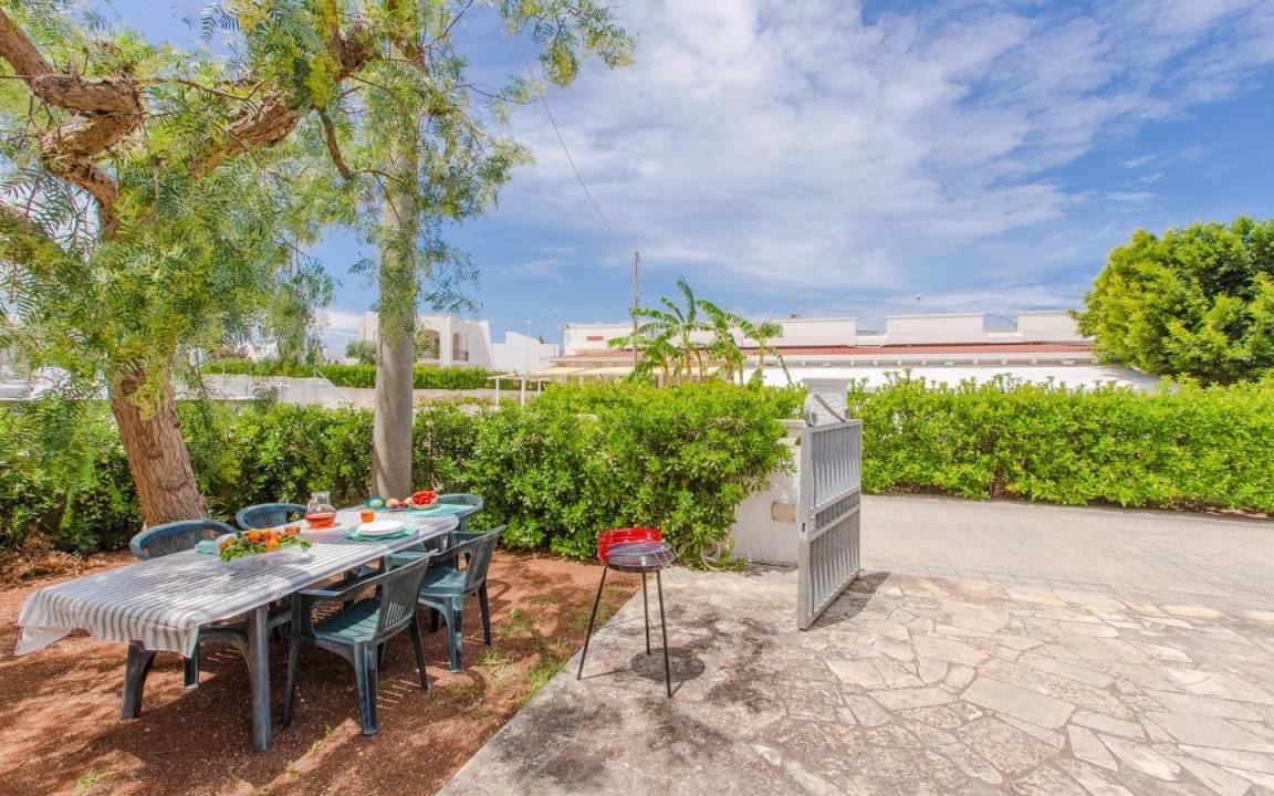 Zur Miete modernes neues Haus am Meer in Apulien in Torre Santa Sabina. Ideal für den Urlaub in der Nähe vom Meer und von Ostuni. Hier werden sich selbst Ihre Haustiere wohl fühlen dank des mehr als 100 Quadratmeter großen Gartens.