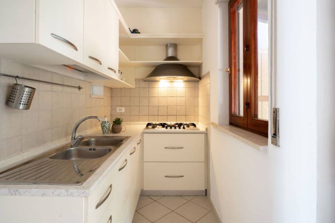 Wohnküche: gut ausgestattete Küche, Kühlschrank, Herd, Ofen, Bügeleisen, Sofa bed, WiFi Internet, TV, Ausgang auf den Garten, Ausgang auf die Veranda.