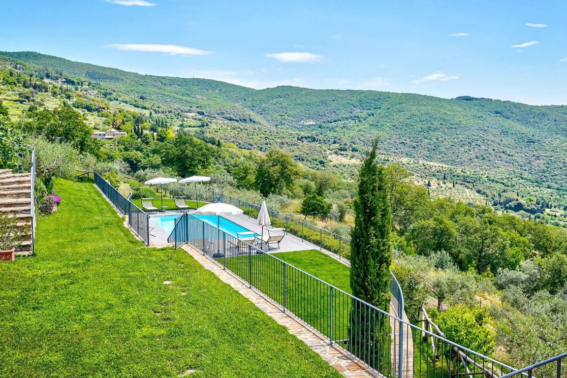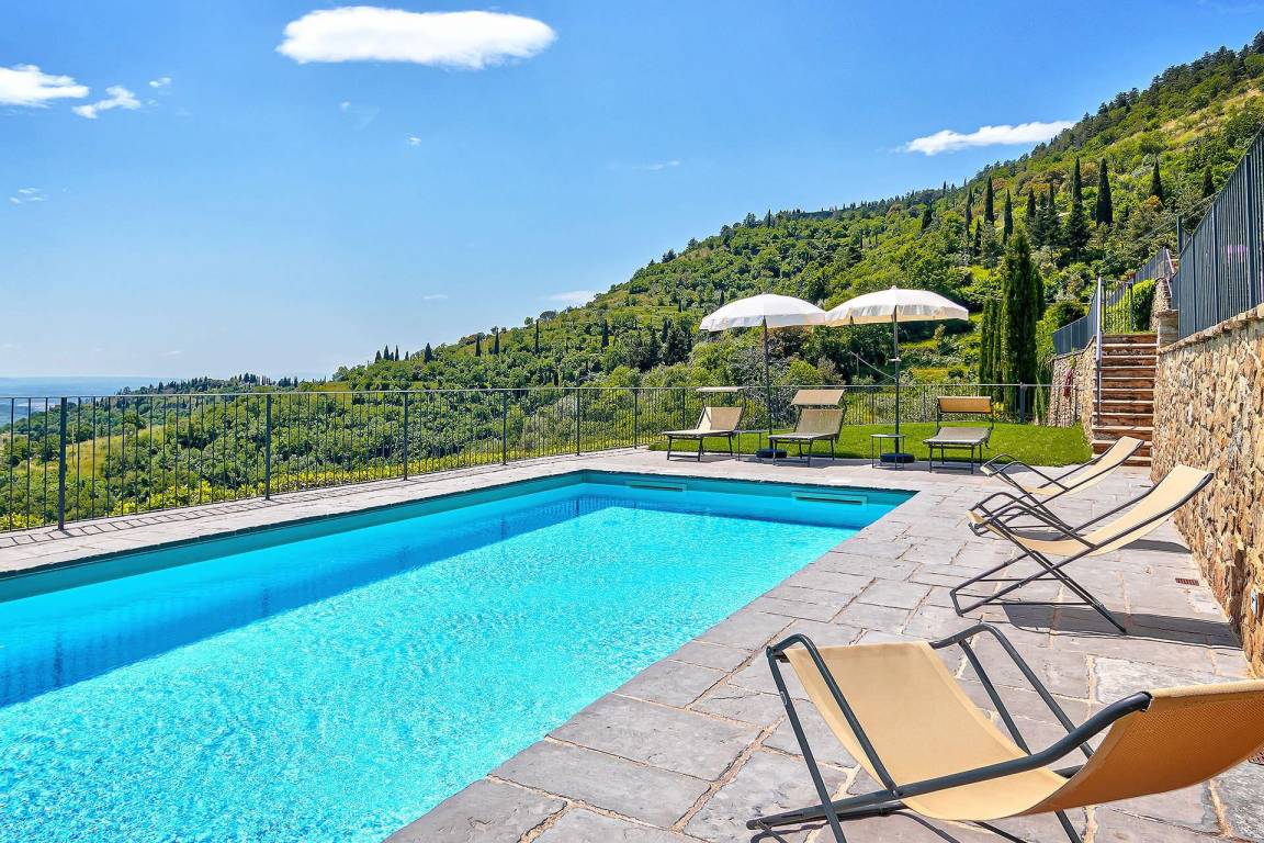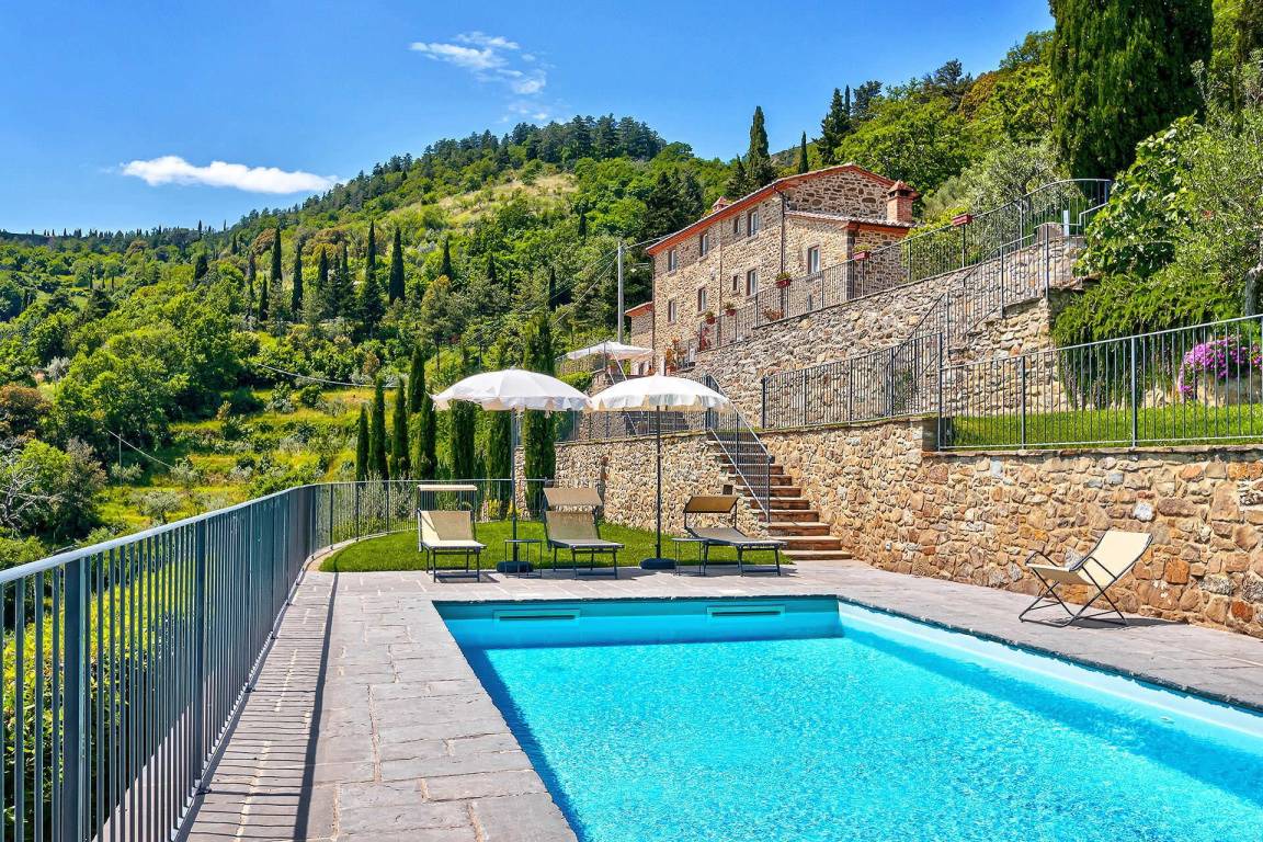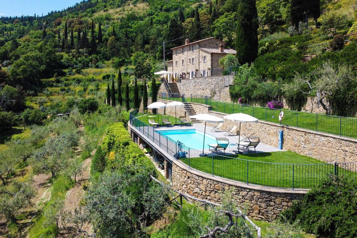 Die Villa liegt in der Nähe der historischen Stadt Cortona in der Toskana. Ein privater Swimmingpool befindet sich auf dem Grundstück.