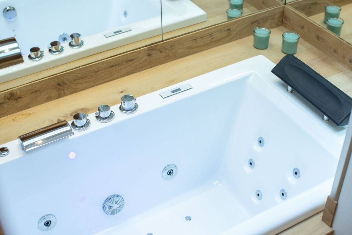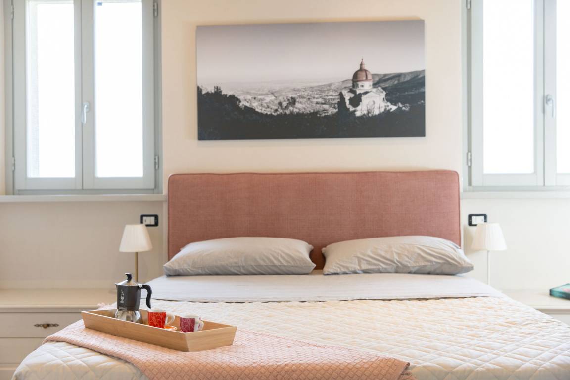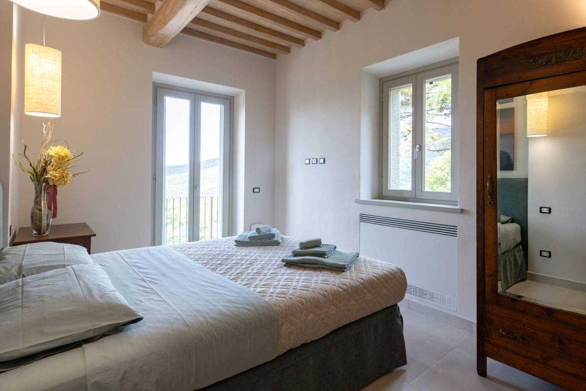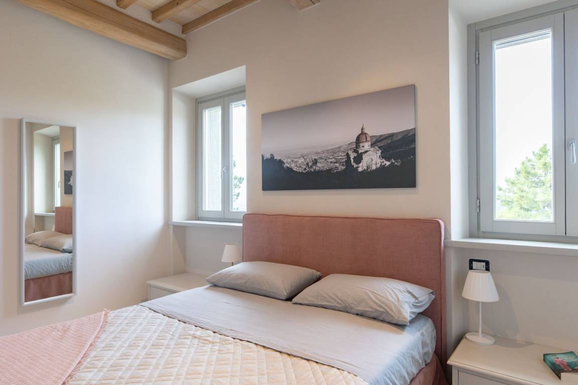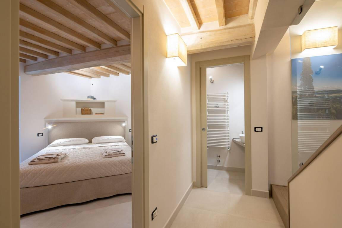 Schlafzimmer mit Bad: Doppelbett, WiFi Internet, Klimaanlage, Fliegengitter, Whirlpool-Badewanne, Waschbecken, WC, Bidet, Dusche, Fön.