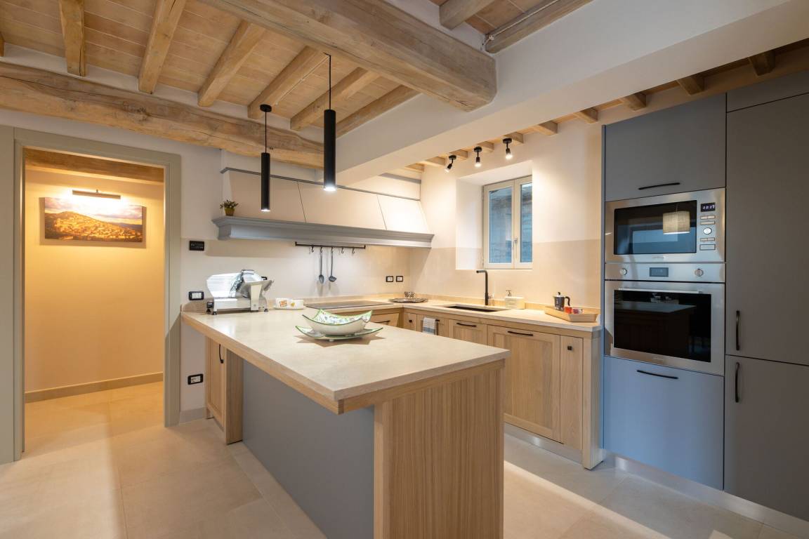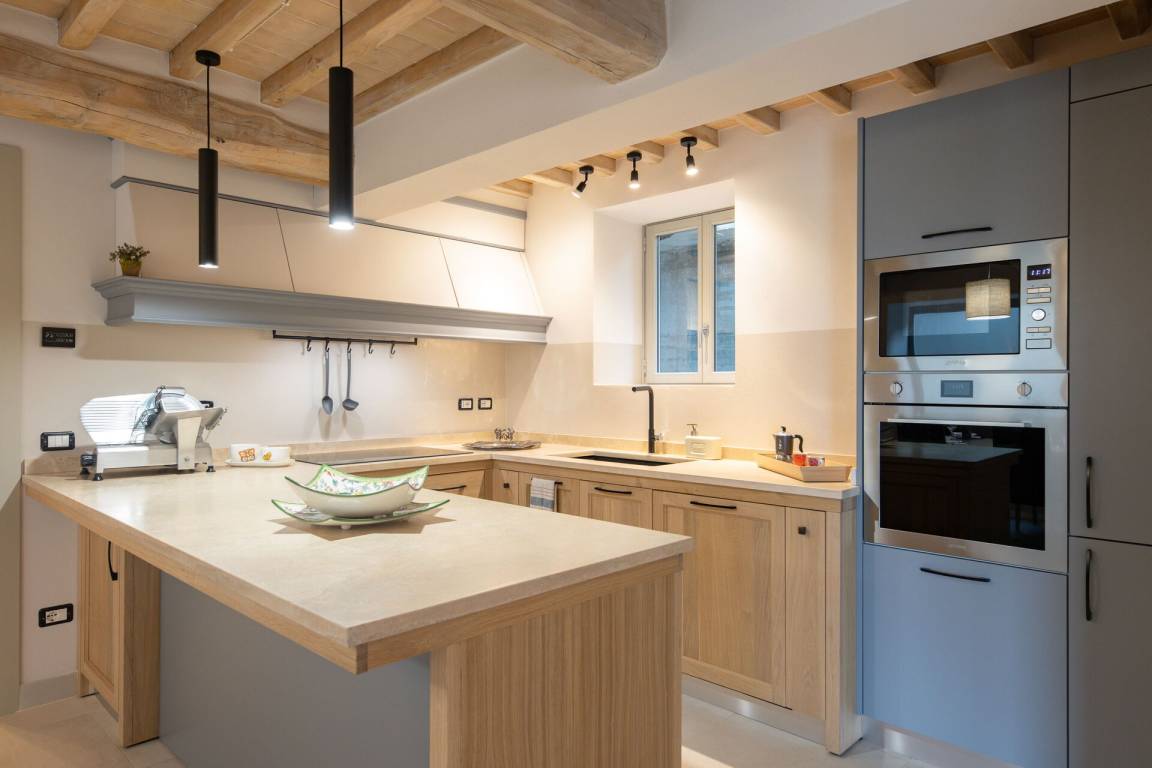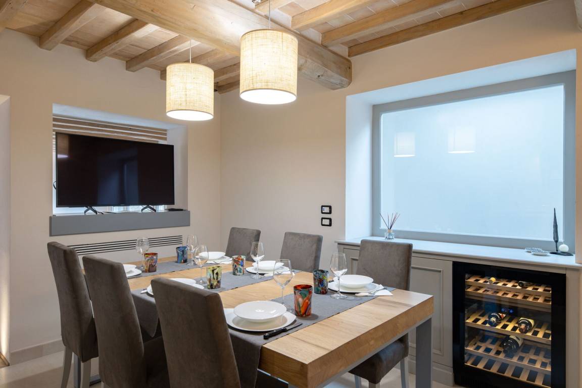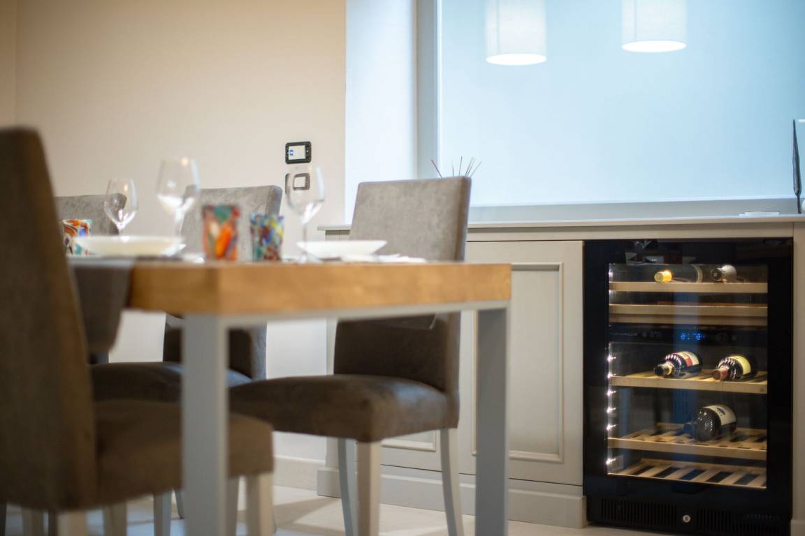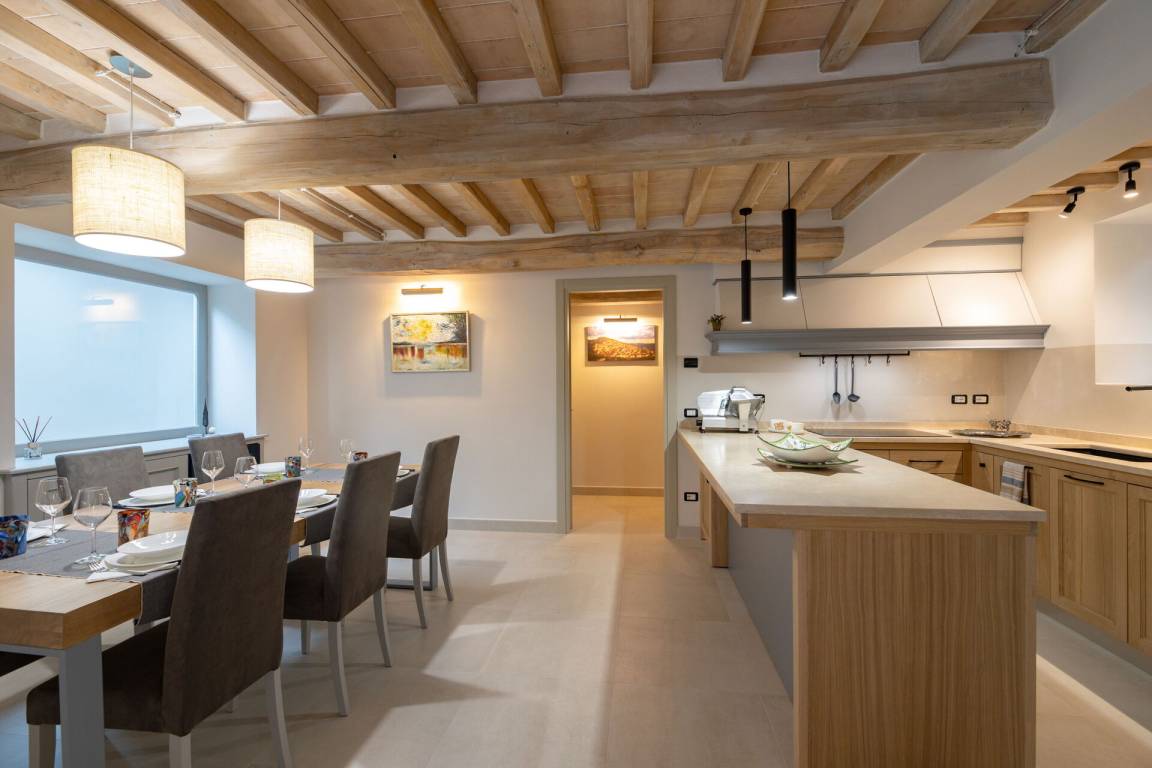 Wohnküche: gut ausgestattete Küche, Esstisch, Spülmaschine, Kühlschrank, Tiefkühler, Mikrowelle, Herd, Ofen, Toaster, Italienische Kaffeemaschine, Amerikanische Kaffeemaschine, Sofa, WiFi Internet, Klimaanlage, Fliegengitter, Satelliten-TV, Ausgang auf den Garten.
