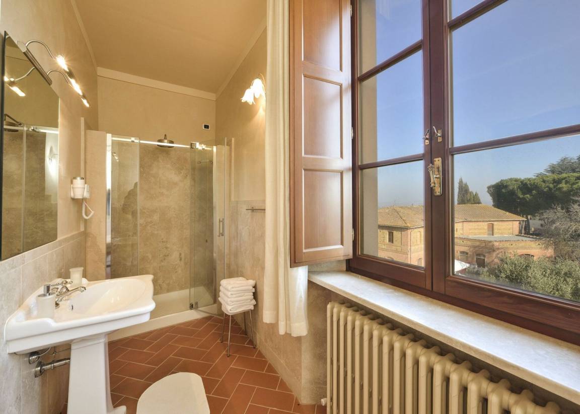Schlafzimmer mit Bad 7: Doppelbett, WiFi Internet, Klimaanlage, TV, Waschbecken, WC, Bidet, Dusche, Fön.
