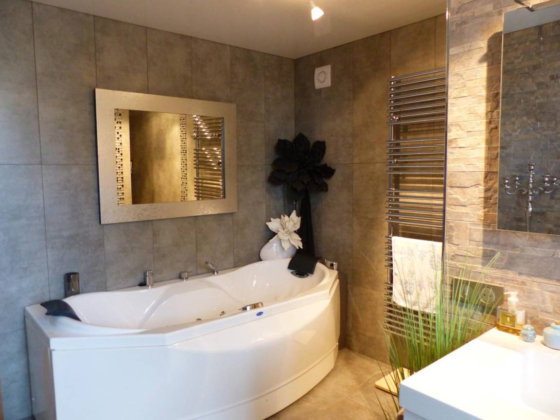 Im Erdgeschoss haben Sie auch ein großes Esszimmer, eine weitere kleine Lounge/Bar, ein Schlafzimmer mit Betten (2 x 90 cm Einzelbetten), ein großes Badezimmer mit Dusche und Whirlpool-Badewanne und ein kleines Zimmer mit möglichem Kinderbett. (unabhängige Toiletten). Im