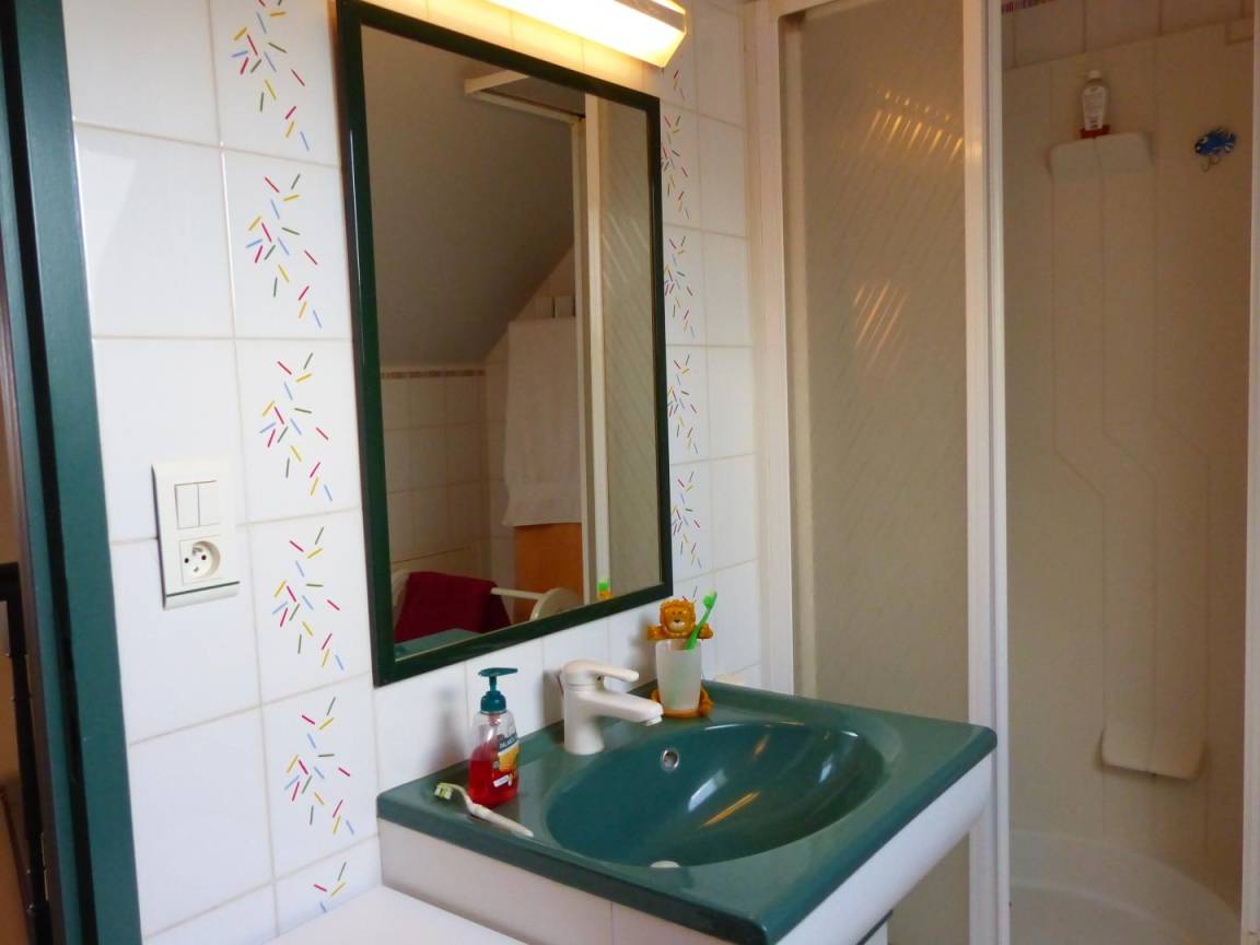 Obergeschoss wurde ein Schlafzimmer mit einem Bett (140 x 190 cm), ein Duschbad, separate Toiletten und zwei angrenzende Schlafzimmer (je ein Bett von 140 x 190 cm), darunter ein Giebel mit Teleskop, in ein Zwischengeschoss umgewandelt. Bratpfanne vorhanden.