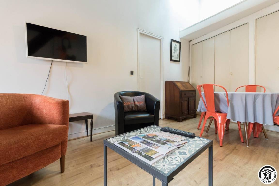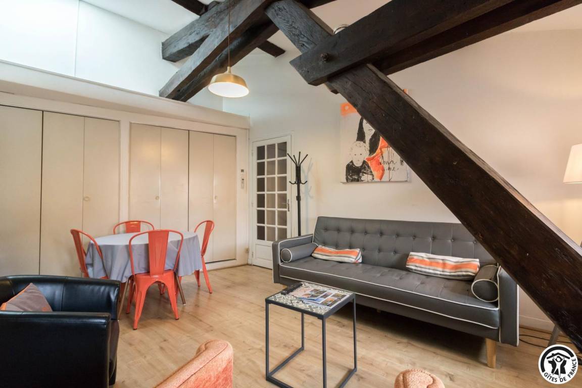 „A very nicely situated apartment in the top floor of an old "hôtel" (merchant's house). It has the charme of a 17th-century building, is well furnished (a mix of old and new), very quiet although it is next to bars, restaurants and the busy place de Carmen. You can sleep with open windows!Small drawback: As a woman travelling alone it was a bit creepy to cross the court and climb the 3 floors up to the apartment, although I am not a frightful person. (There was no one else in the old palais some of the days I was there.) - And some walls and the bathroom would need renovation. I would definitely recommend the place for a couple!“
