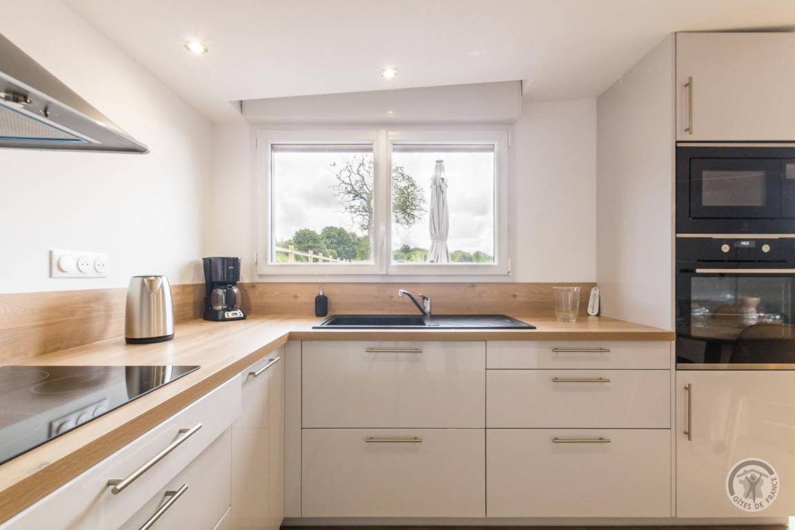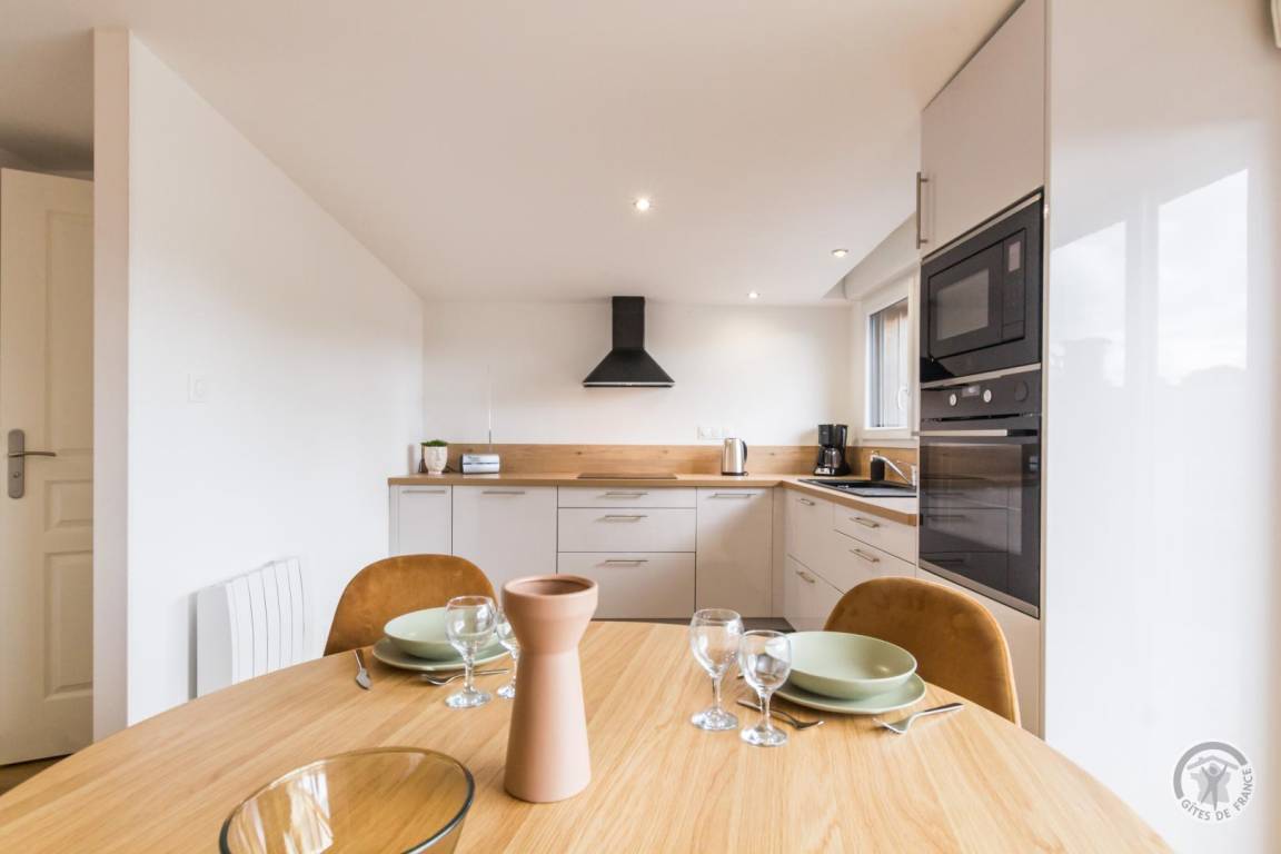 „Beaucoup de bonnes choses dans ce gite. Les propriétaires ont pensé au moindre détail pour répondre à nos besoins. L ' aménagement est très complet. La literie, le mobilier et l'électroménager sont de très bonne qualité. La cuisine, spacieuse, avec des plans de travail très appréciables. Pas de robot compliqué, dans cette cuisine, mais tous les ustensiles possibles et imaginables pour vous faciliter la vie. Plus, un environnement très calme et des propriétaires extrêmement gentils.“