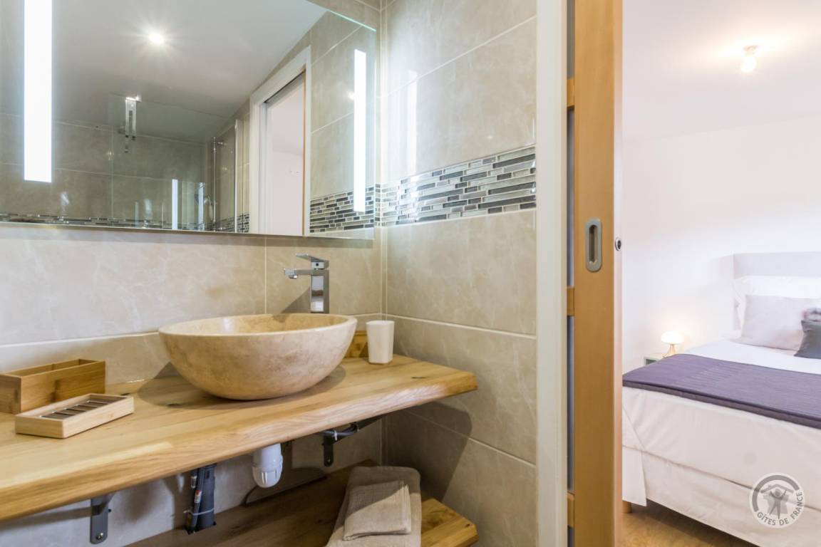 „Endroit particulièrement agréable, calme avec un gîte parfait pour 2 personnes: Lumineux, propre, très bien équipé au niveau cuisine, literie excellente et très bien chauffé. Espace extérieur à l'abri des regards et facilité pour se garer. Les propriétaires sont très gentils. Cela nous donne envie d'y revenir.“