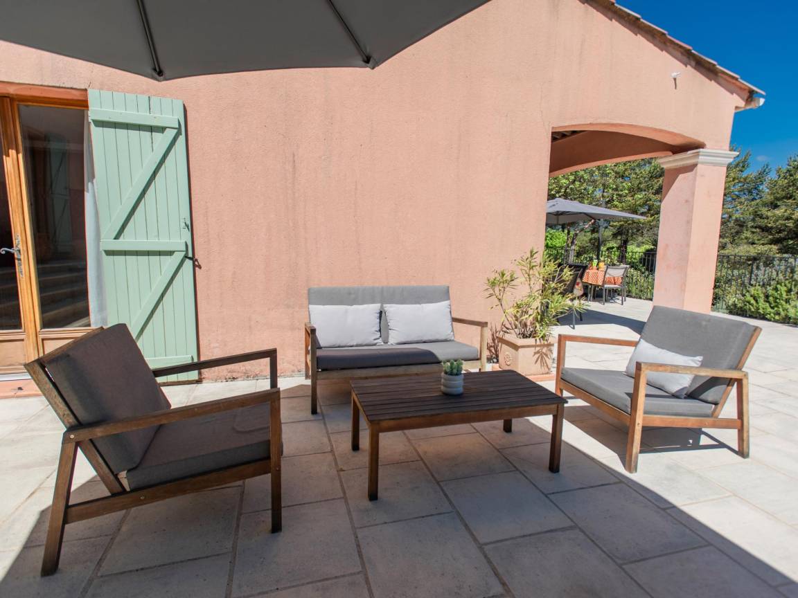 Hausbeschreibung : Erleben Sie den Zauber der Provence in dieser Villa, die zwischen alten Kiefern und duftendem Lavendel liegt, 3 km vom Dorf Tourtour entfernt. Das geräumige Haus bietet schattige Terrassen, einen großen Salzwasserpool mit luxuriösen Sonnenliegen und einen gemütlichen Loungebereich. Genießen Sie das sanfte Zirpen der Grillen, während Sie einen köstlichen lokalen Wein trinken. Entspannen Sie sich mit einem Buch, während sich die Kinder im Wasser vergnügen. Hier erleben Sie die echte Provence