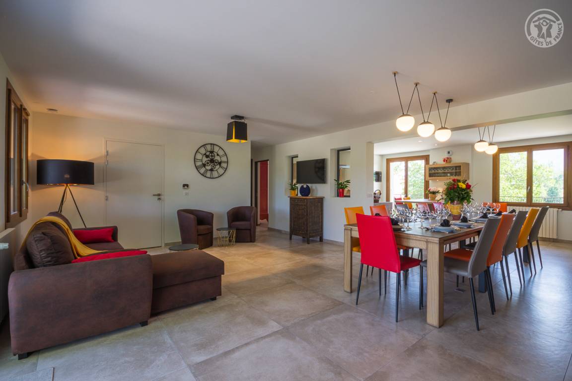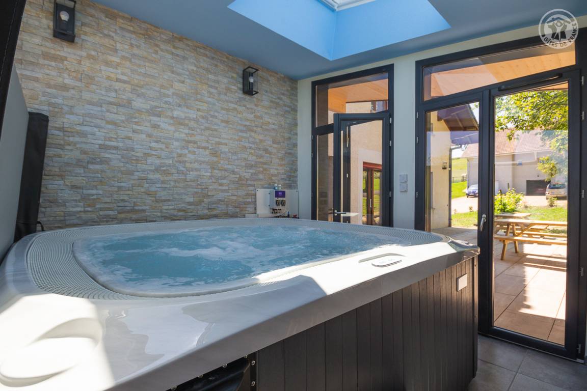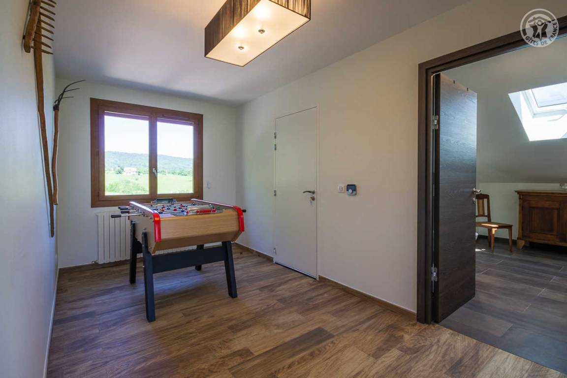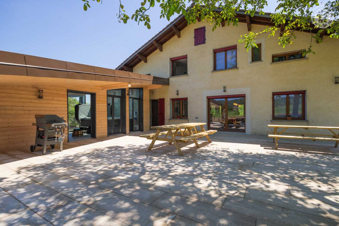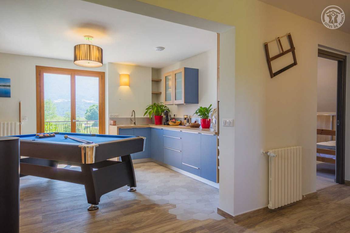 „Nous avions loué ce gîte pour se retrouver à 13 en famille dans une région agréable pendant 15 jours. Idéal ! La maison est vaste, toutes les pièces aussi;l’ensemble offre un intérieur moderne et fonctionnel. On s’y "sent bien ". Certes, il n’y a pas de piscine, mais le Lac d’Aiguebelette est tout proche, et le spa avec jacuzzi pour 7 est un plaisir. Et que dire de l’équipement ! Il y a tout pour 15 personnes, tous les ustensiles de cuisine possibles et imaginables (dont certains que nous ne connaissions même pas), 4 TV.. de mémoire, des jeux de toutes sortes, baby-foot et billard, table et raquettes de TT, terrain et boules de pétanque...etc...etc..Un bémol: Les vaches des prairies voisines apportent nombre de mouches, mais il y a les bombes et tapettes nécessaires. Et le propriétaire a confirmé son intention de mettre des moustiquaires aux ouvrants du RDJ. Pour résumer, même en son état actuel, je recommande chaleureusement.“