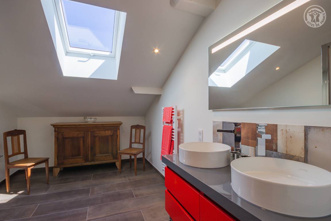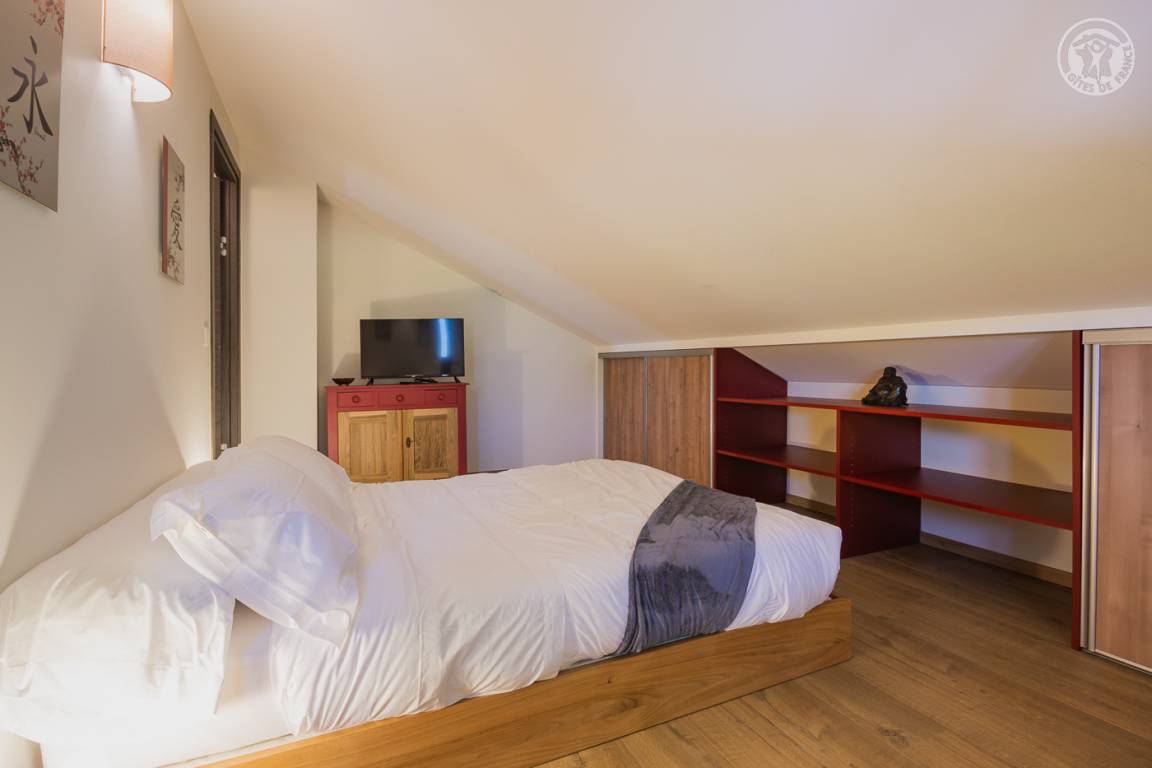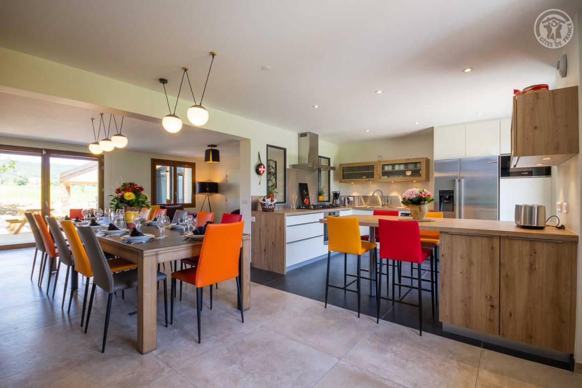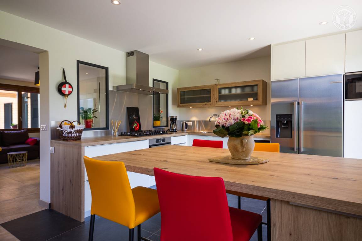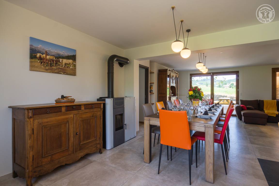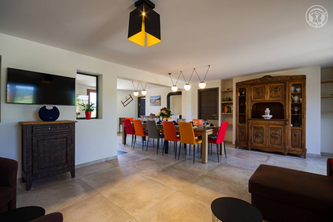 „Nous avions loué ce gîte pour se retrouver à 13 en famille dans une région agréable pendant 15 jours. Idéal ! La maison est vaste, toutes les pièces aussi;l’ensemble offre un intérieur moderne et fonctionnel. On s’y "sent bien ". Certes, il n’y a pas de piscine, mais le Lac d’Aiguebelette est tout proche, et le spa avec jacuzzi pour 7 est un plaisir. Et que dire de l’équipement ! Il y a tout pour 15 personnes, tous les ustensiles de cuisine possibles et imaginables (dont certains que nous ne connaissions même pas), 4 TV.. de mémoire, des jeux de toutes sortes, baby-foot et billard, table et raquettes de TT, terrain et boules de pétanque...etc...etc..Un bémol: Les vaches des prairies voisines apportent nombre de mouches, mais il y a les bombes et tapettes nécessaires. Et le propriétaire a confirmé son intention de mettre des moustiquaires aux ouvrants du RDJ. Pour résumer, même en son état actuel, je recommande chaleureusement.“