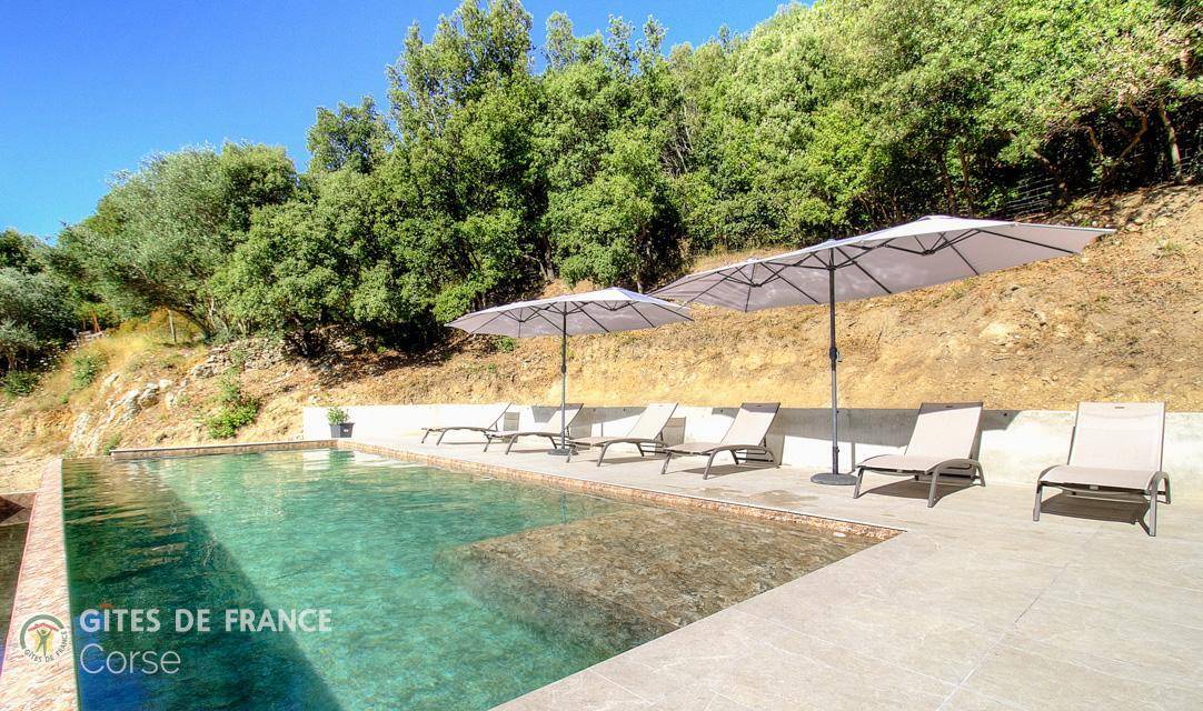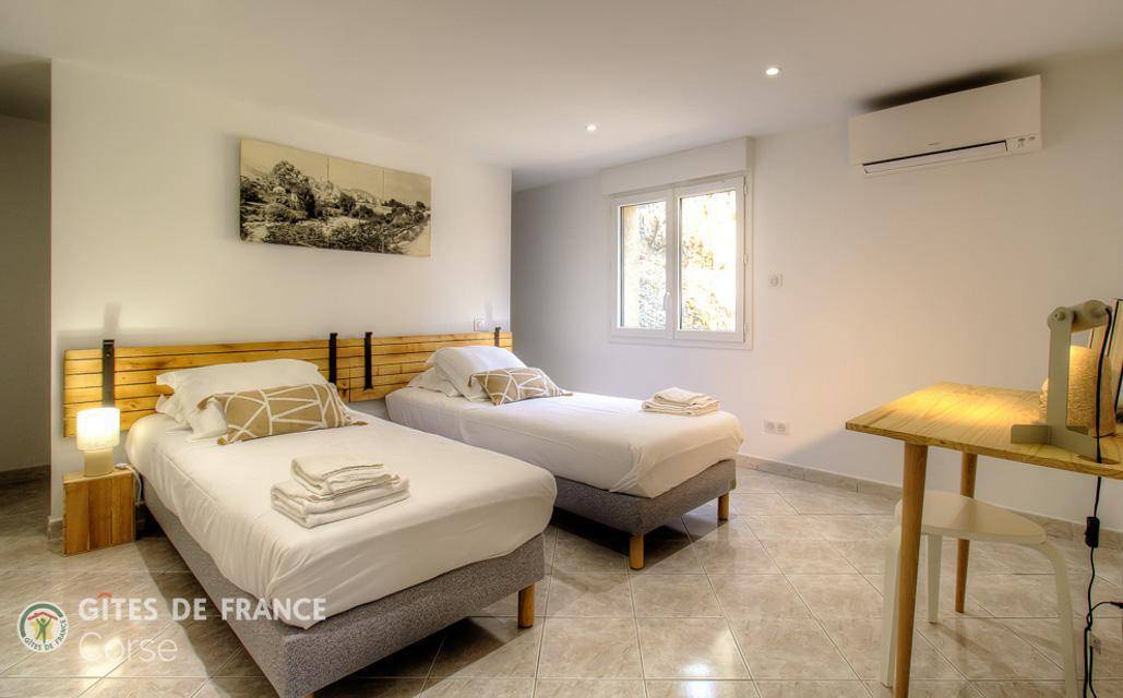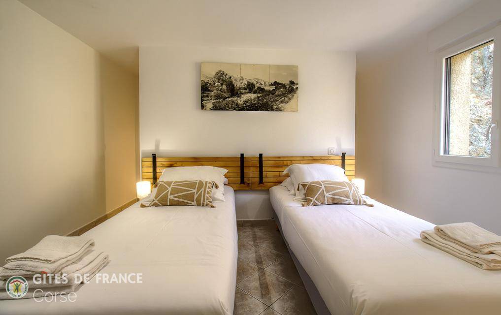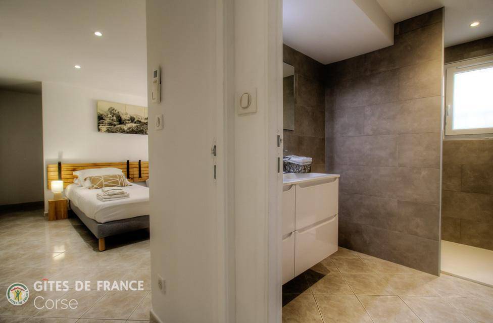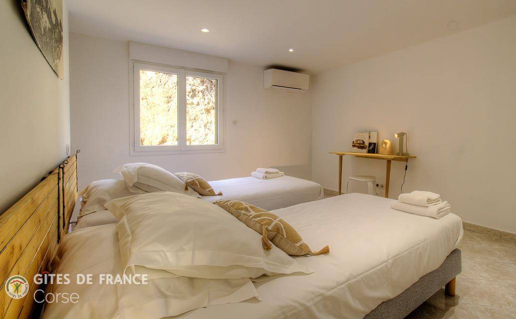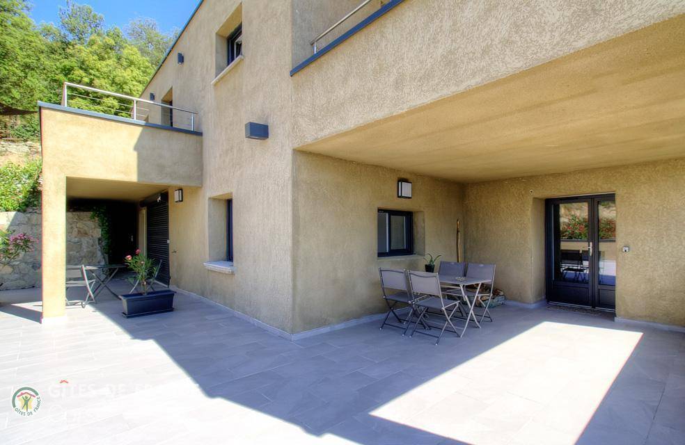 Weniger als 5 km von Corte entfernt, mitten in den Bergen, befindet sich diese 85 m² große Wohnung im 1. Stock eines Hauses, das eine angrenzende Ferienwohnung (64492), zwei Ferienwohnungen im Erdgeschoss und die Wohnung der Eigentümer im zweiten Stock umfasst. Sie ist wie folgt aufgeteilt: