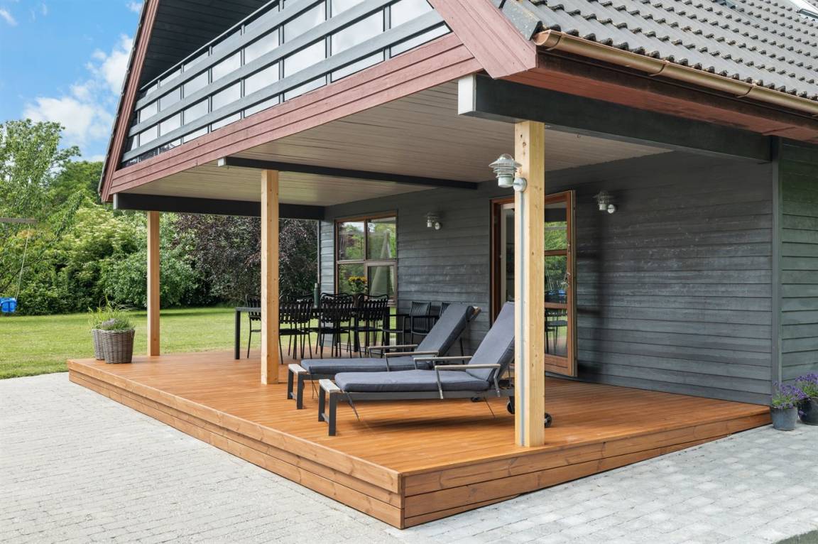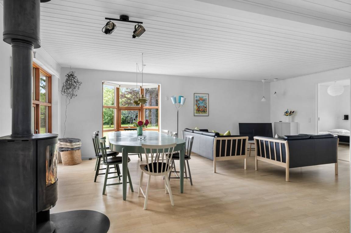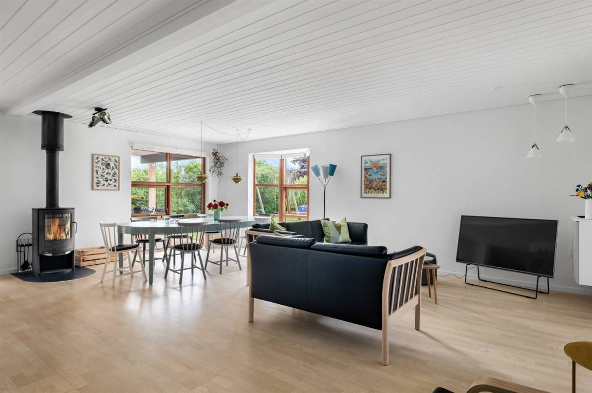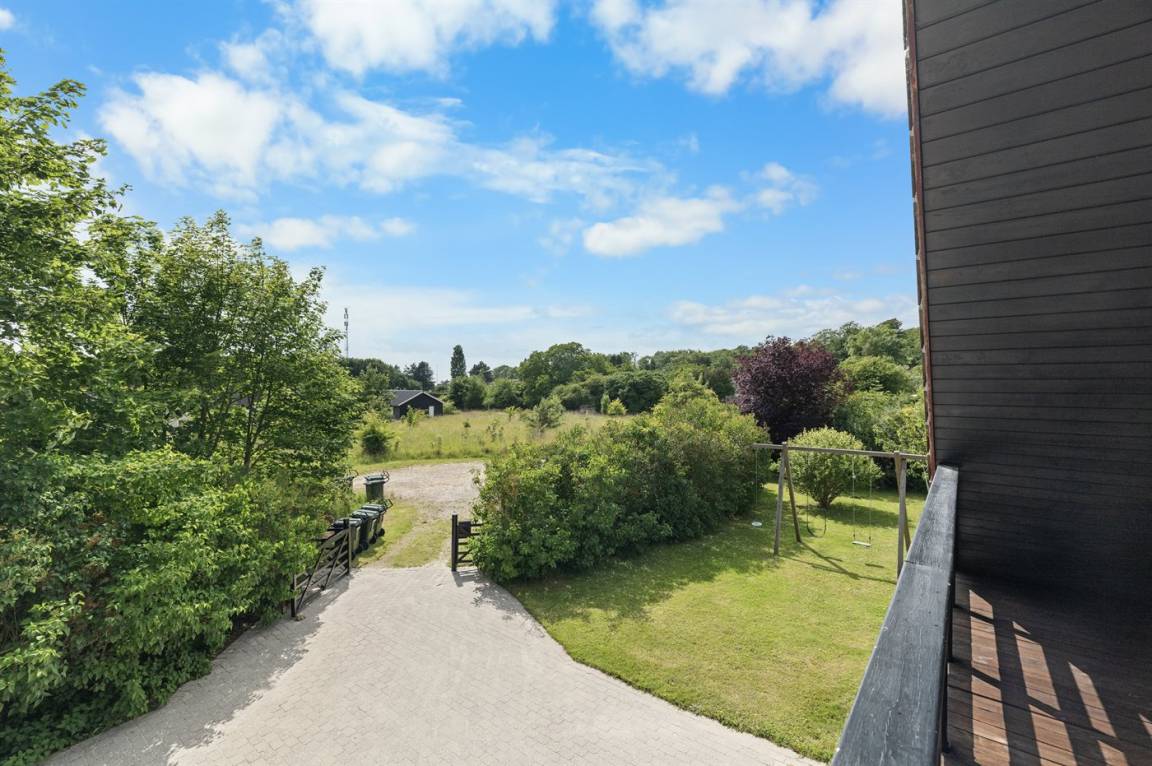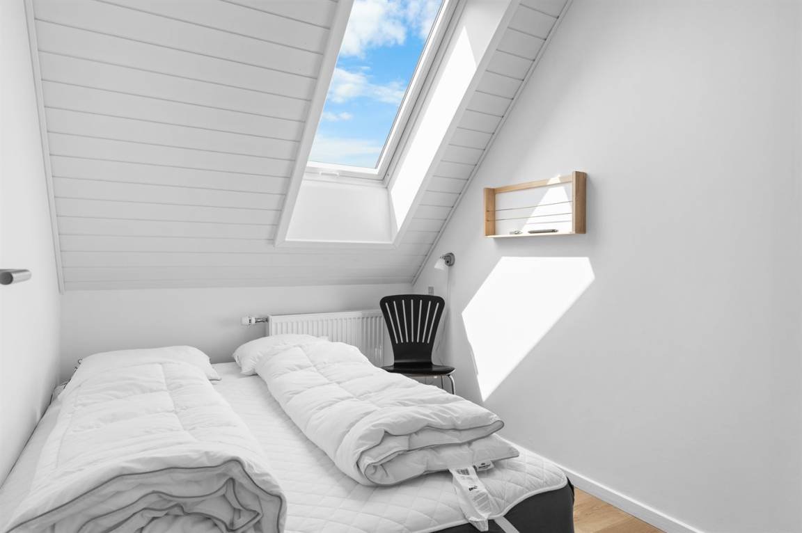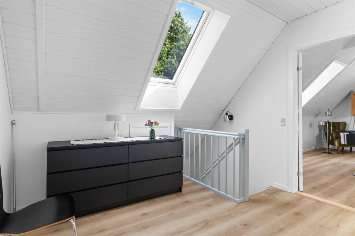 Herrlich großes und hübsches Ferienhaus mit Platz für die ganze Familie – sowohl drinnen als auch draußen! Zwei gut eingerichtete Etagen. Im 1. Stock Aktivitätsraum mit mehreren Aktivitäten, u. a. einer Kletterwand. Vom Aktivitätsraum gelangt man auf den herrlichen Balkon mit Loungebereich im Freien.
