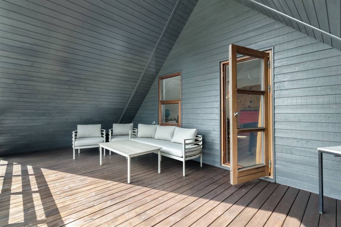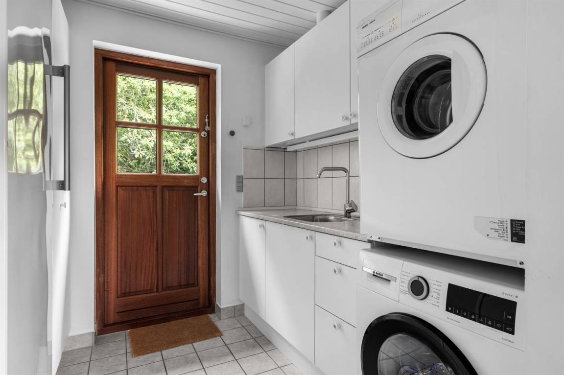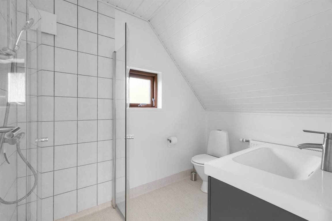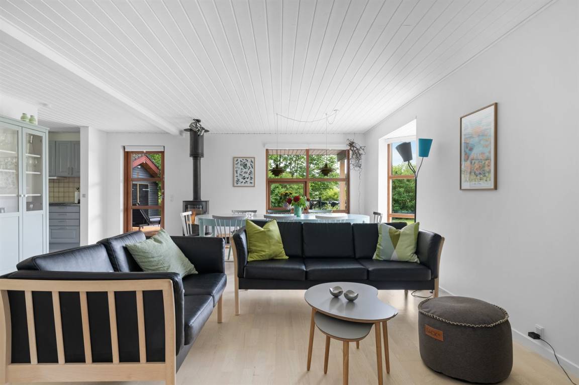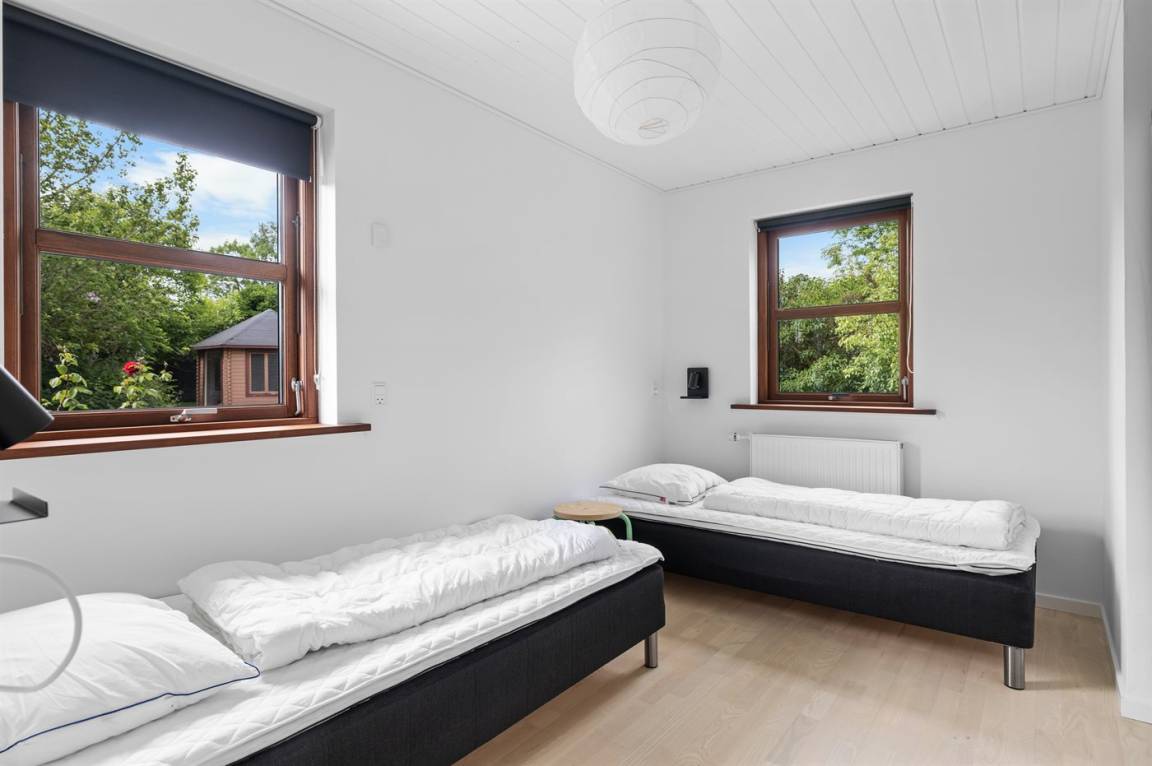 Herrlich großes und hübsches Ferienhaus mit Platz für die ganze Familie – sowohl drinnen als auch draußen! Zwei gut eingerichtete Etagen. Im 1. Stock Aktivitätsraum mit mehreren Aktivitäten, u. a. einer Kletterwand. Vom Aktivitätsraum gelangt man auf den herrlichen Balkon mit Loungebereich im Freien.
