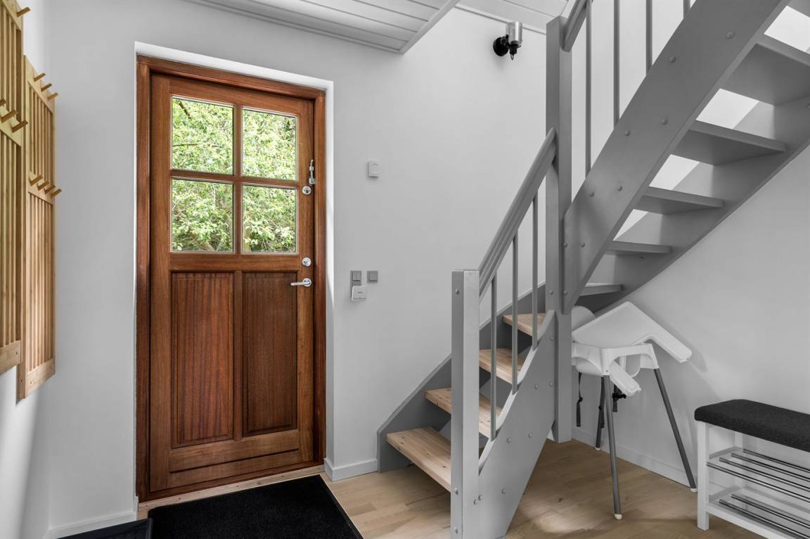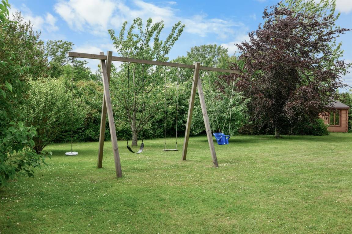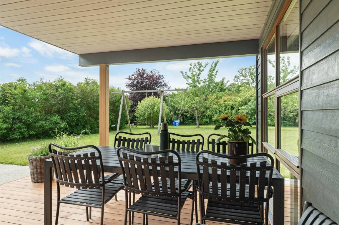 Zum Haus gehört eine schöne überdachte Terrasse und ein großer Garten mit Obstbäume, Beerensträucher, Lagerfeuerstelle und Schaukeln. Vom Garten aus haben Sie Zugang zu einem großen Waldgebiet.