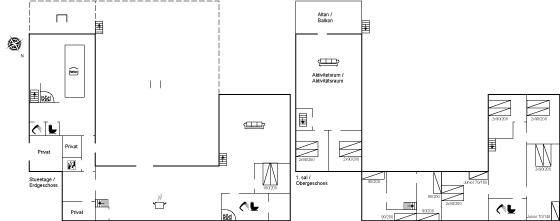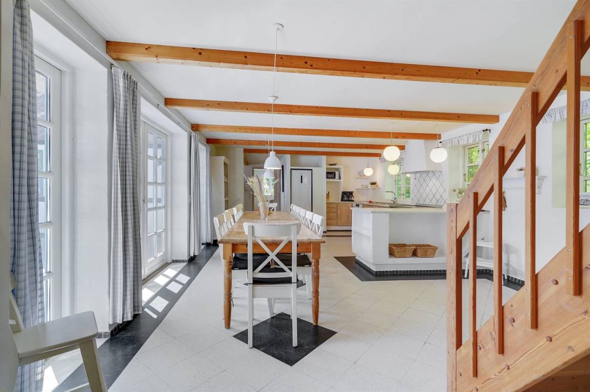 Dieser ehemalige Bauernhof eignet sich für 16 Personen. 2 der Schlafplätze eignen sich jedoch nur für größere Kinder (4-11 Jahre). Die Ferienunterkunft hat eine Wohnfläche von 429 m², ist 2-stöckig, und wurde 1827 gebaut. 2002 wurde die Ferienunterkunft renoviert. 2020 wurde die Ferienunterkunft teilweise renoviert. Haustiere dürfen nicht mitgebracht werden. Fußbodenheizung im Wohnzimmer. Fußbodenheizung in der Diele. Fußbodenheizung im Wohnraum. Die Ferienunterkunft ist mit Waschmaschine ausgestattet. Wäschetrockner. Tiefkühlmöglichkeit mit 50 Liter Nutzinhalt. Es gibt außerdem einen Kaminofen. Für die jüngsten Feriengäste ist 1 Kinderhochstuhl vorhanden. Wickeltisch.