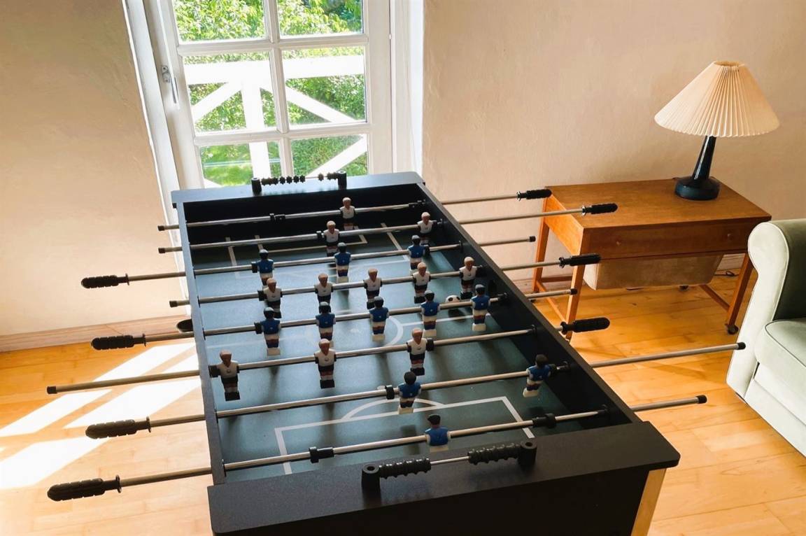 Das Haus erstreckt sich über zwei Etagen. Im Erdgeschoss befinden sich Esszimmer, Wohnzimmer, Küche, zwei Schlafzimmer sowie ein Badezimmer und eine Gästetoilette. Im Obergeschoss liegt ein großes Schlafzimmer mit einem Tischfußballspiel und Zugang zu einem Balkon, von dem du einen schönen Blick über die Umgebung hast.