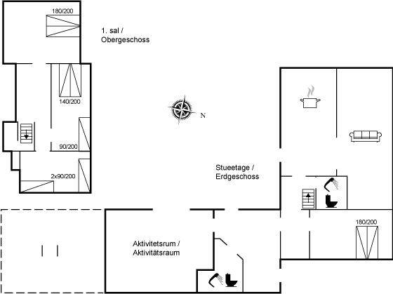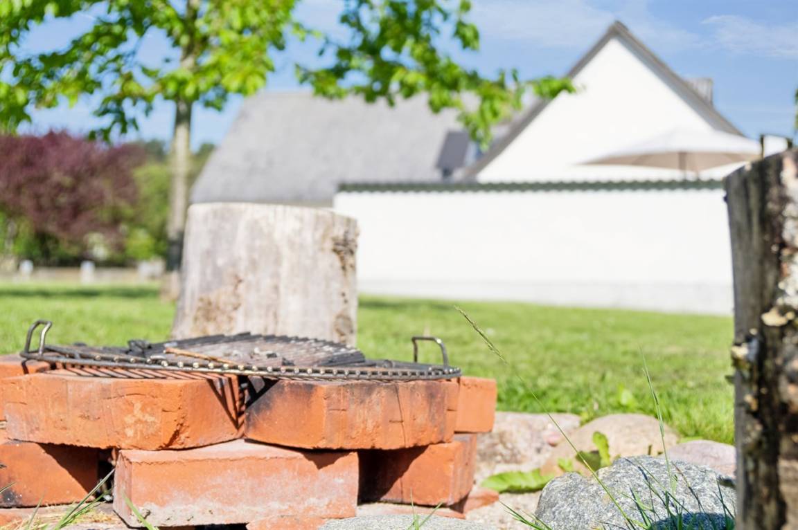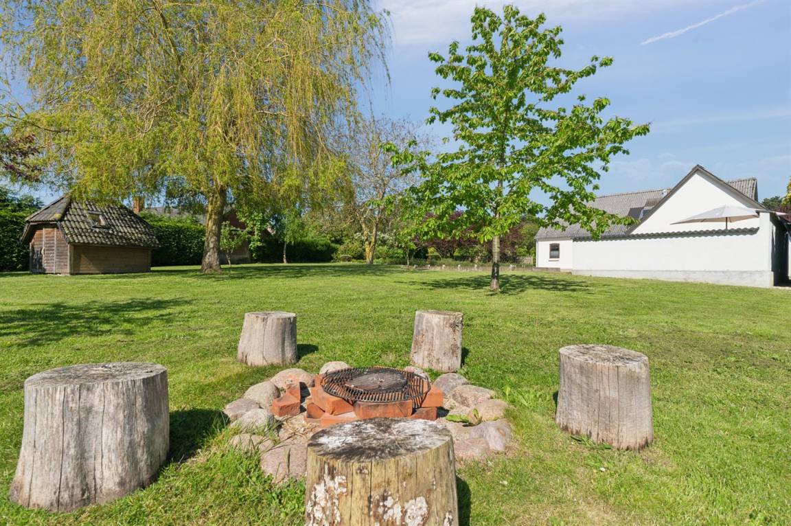 DraußenDie Ferienunterkunft liegt auf einem 2767 m² großen Gartengrundstück. Die Entfernung zum Meer beträgt 3000 m. Die nächste Einkaufsmöglichkeit liegt 450 m entfernt. Es steht ein offenes Terrassenareal zur Verfügung. Sandkasten. Kinderspielhaus. Fußballtor. Die Entfernung zu einem Spielplatz beträgt 750 m.Lagerfeuerstelle. Es steht ein Grill zur Verfügung. Parkplatz auf dem Grundstück.