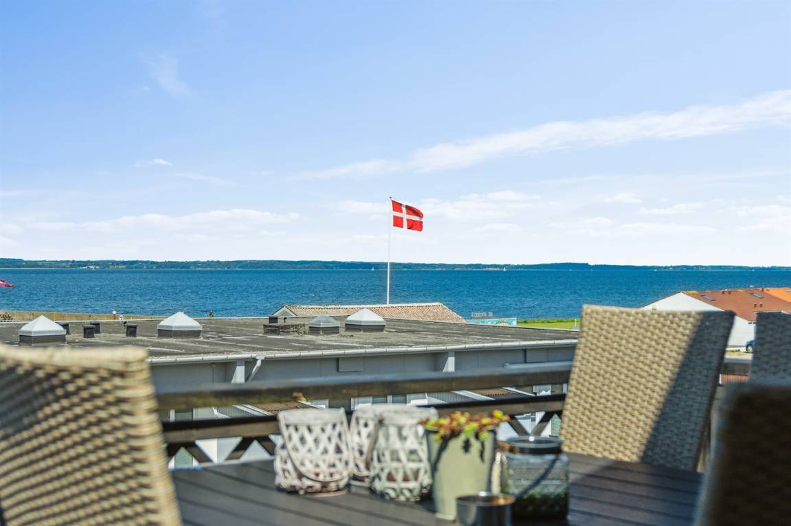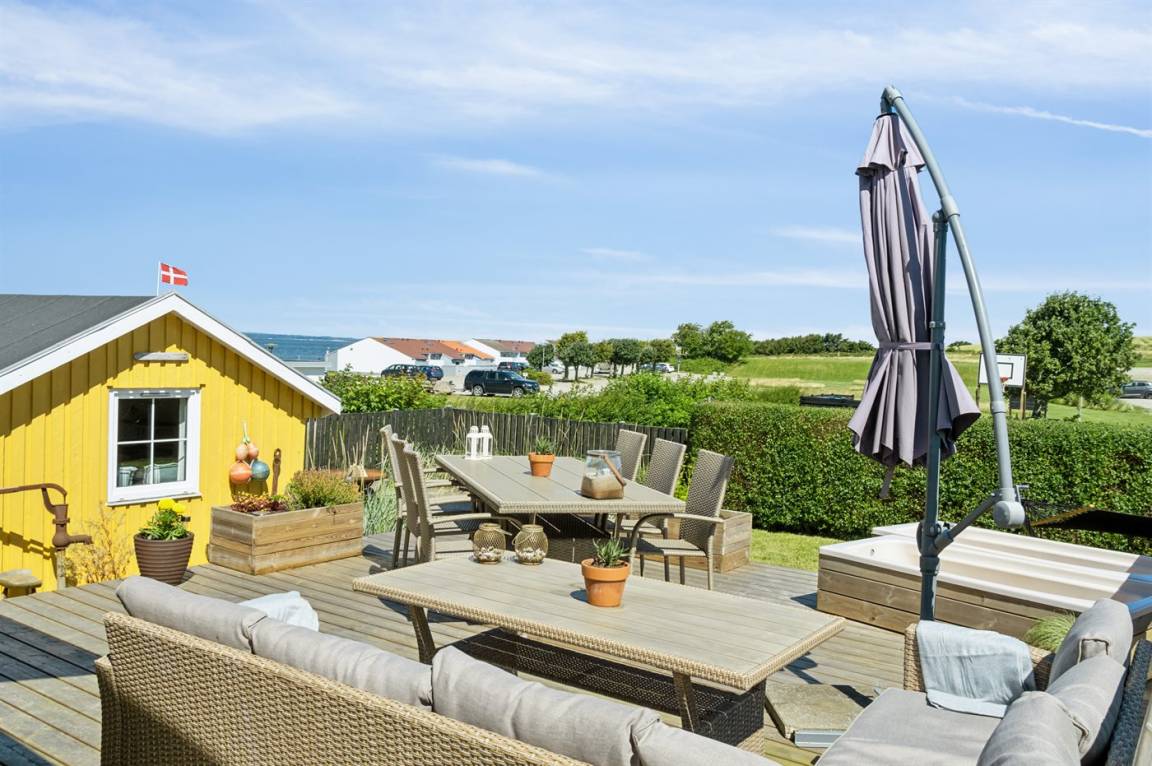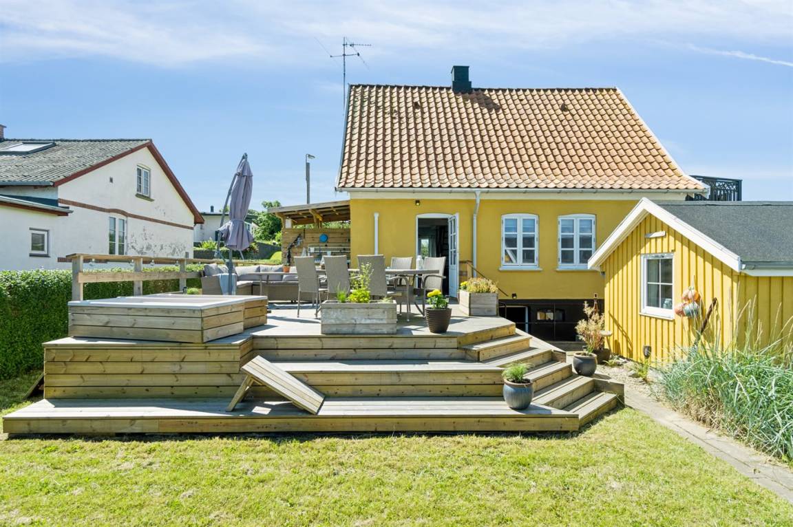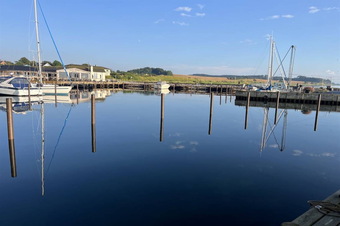 Ein schönes Ferienhaus mit einer hervorragenden Lage direkt am Dageløkke Marina und mit Blick über die Umgebung und das Gewässer zwischen Langeland und Fünen.