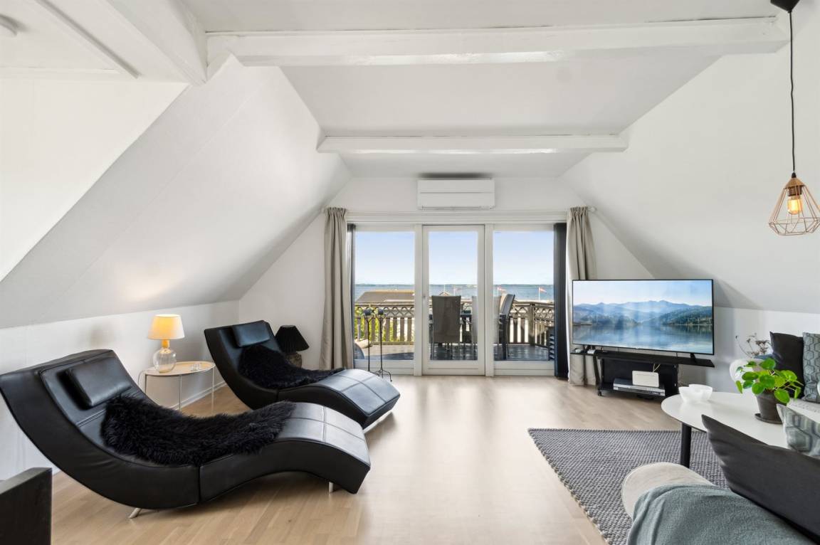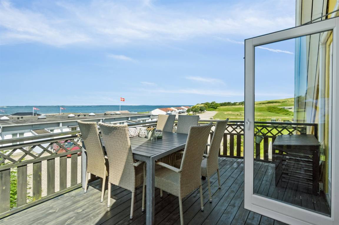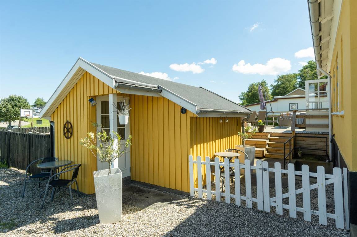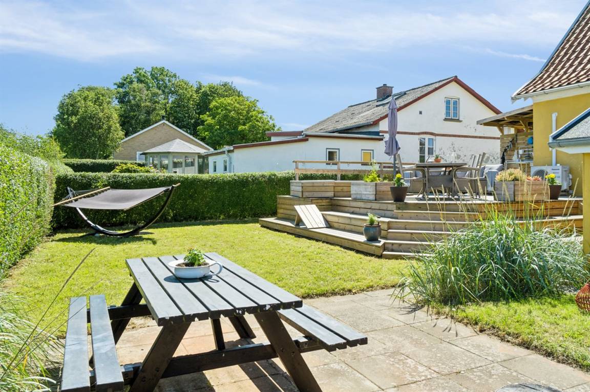 Ein schönes Ferienhaus mit einer hervorragenden Lage direkt am Dageløkke Marina und mit Blick über die Umgebung und das Gewässer zwischen Langeland und Fünen.