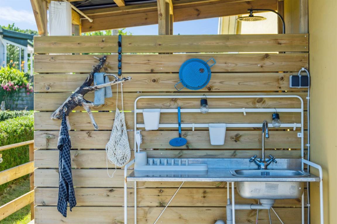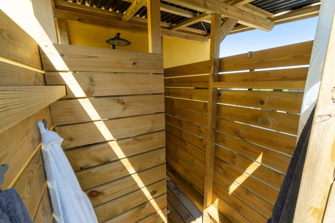 Die Außendusche auf der Terrasse ist nur in der Sommersaison verfügbar.