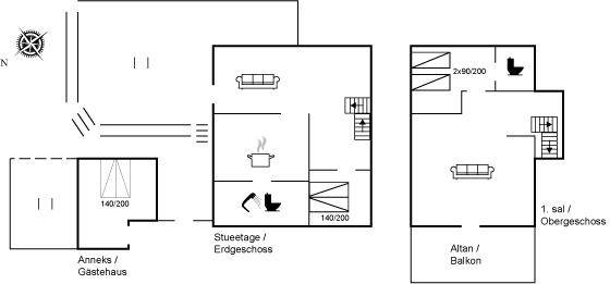 SchlafverhältnisseDie Schlafplätze verteilen sich auf 3 Schlafräume. 4 Schlafplätze in Doppelbetten. 2 Schlafplätze in Einzelbetten. 2 von diesen Schlafplätzen befinden sich im Gästehaus. Ferner steht ein Kinderbett zur Verfügung.