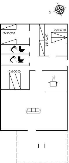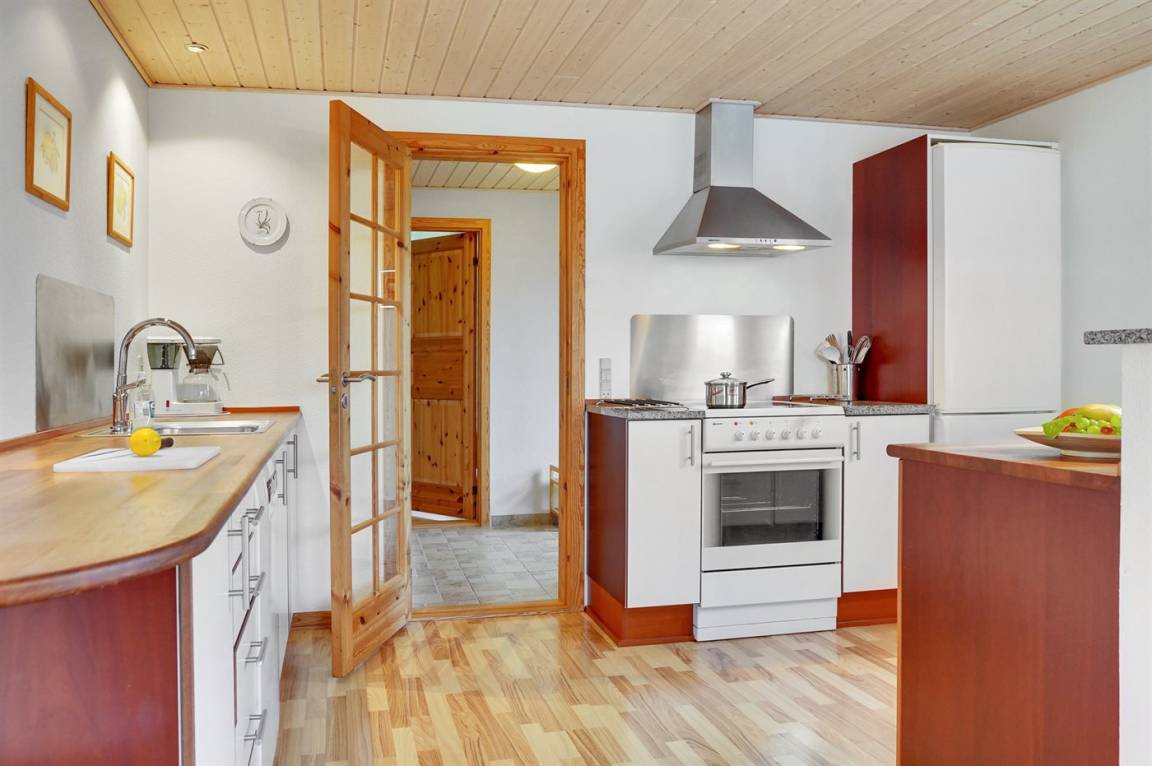 Das Ferienhaus eignet sich für 8 Personen sowie 1 Kleinkind bis zu 3 Jahren. Die Ferienunterkunft hat eine Wohnfläche von 110 m² und wurde 1962 gebaut. 2006 wurde die Ferienunterkunft teilweise renoviert. Haustiere dürfen nicht mitgebracht werden. Die Ferienunterkunft ist mit Waschmaschine ausgestattet. Wäschetrockner. Tiefkühlmöglichkeit mit 40 Liter Nutzinhalt. Es gibt außerdem einen Kaminofen. Für die jüngsten Feriengäste ist 1 Kinderhochstuhl vorhanden.