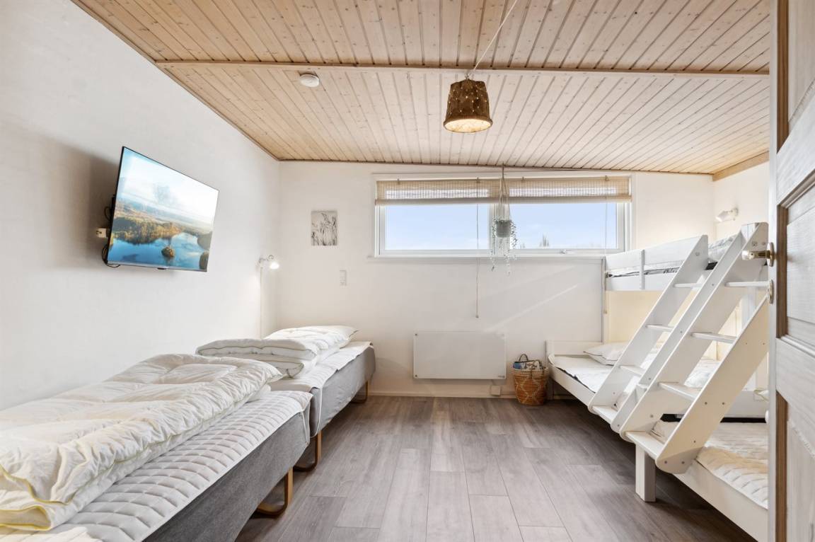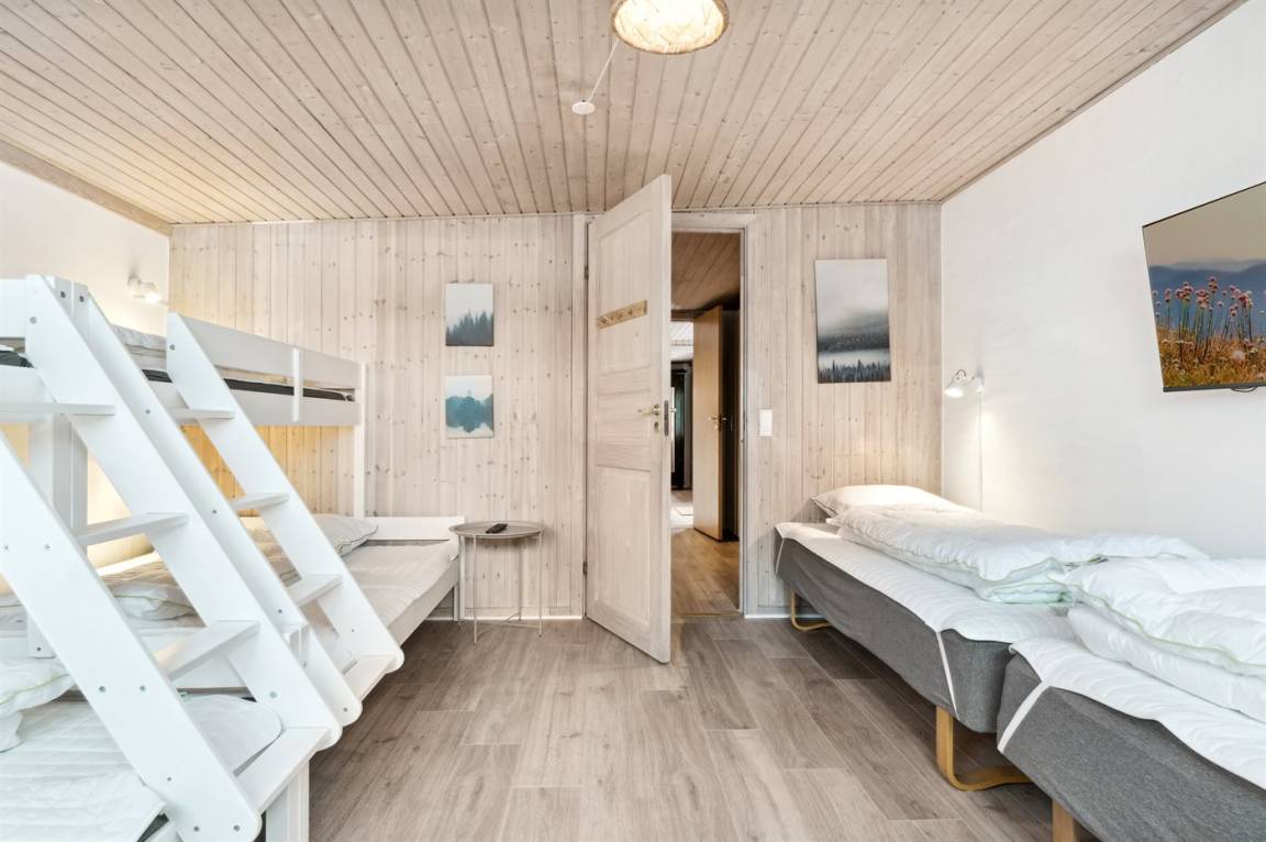 In der schönen Gegend Østerhuse östlich von Lohals auf Nordlangeland befindet sich dieses neu renovierte, große Ferienhaus. Das zweistöckige Haus verfügt im Erdgeschoss über mehrere Zimmer, wobei eines als großes Kinder-/Jugendzimmer mit zwei großen Etagenbetten, mit einem Doppelbett als unterste "Koje", eingerichtet ist. Darüber hinaus gibt es eine neue große Küche, ein großes Wohnzimmer und zwei Badezimmer.