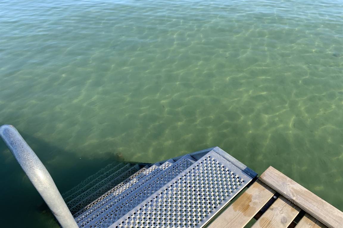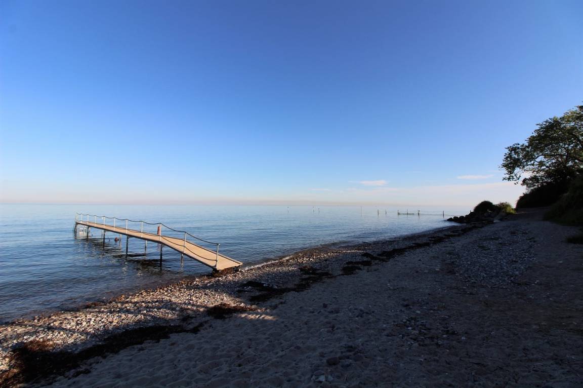 Fußläufig vom Haus entfernt liegt ein schöner Badestrand, an dem in der Sommersaison ein Badesteg aufgestellt ist.