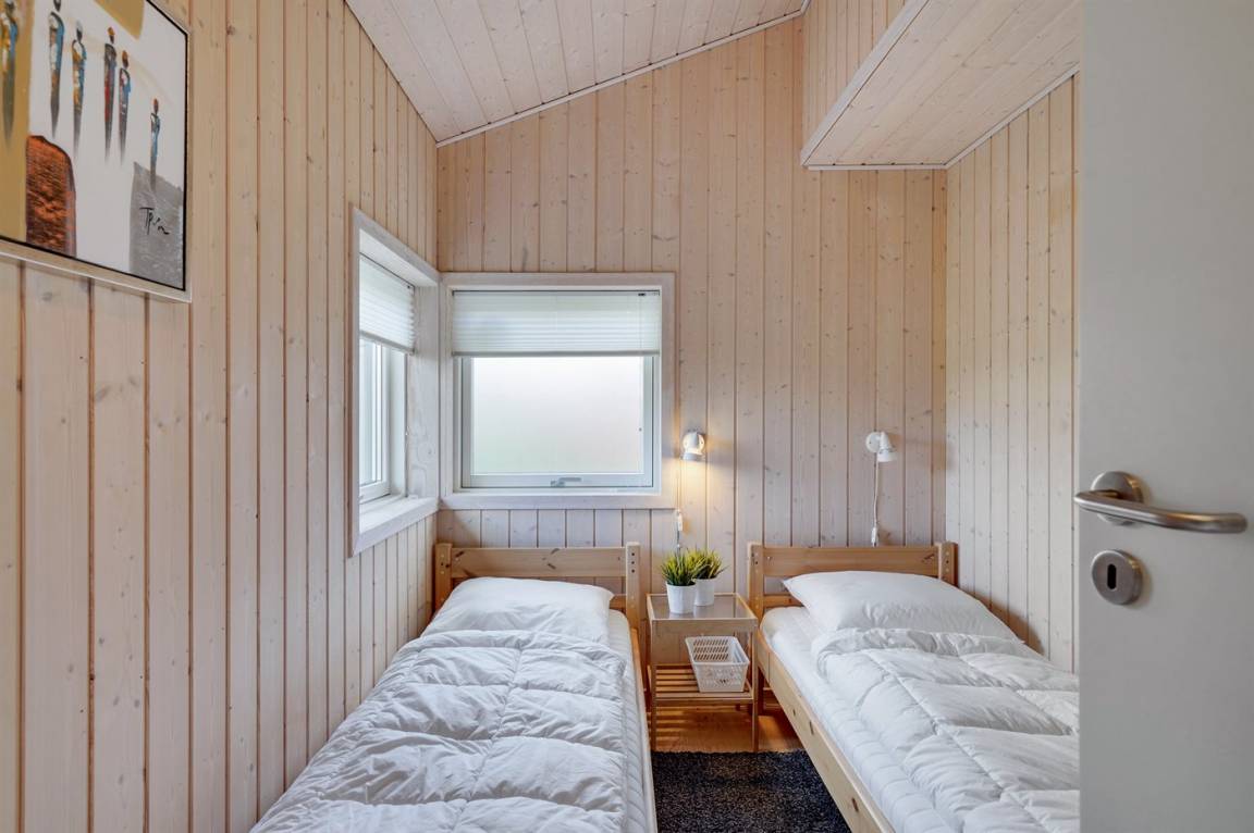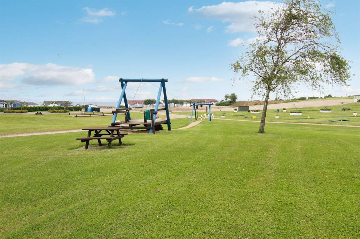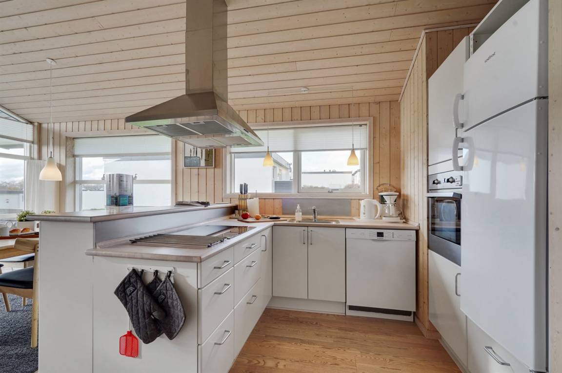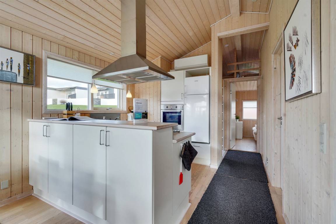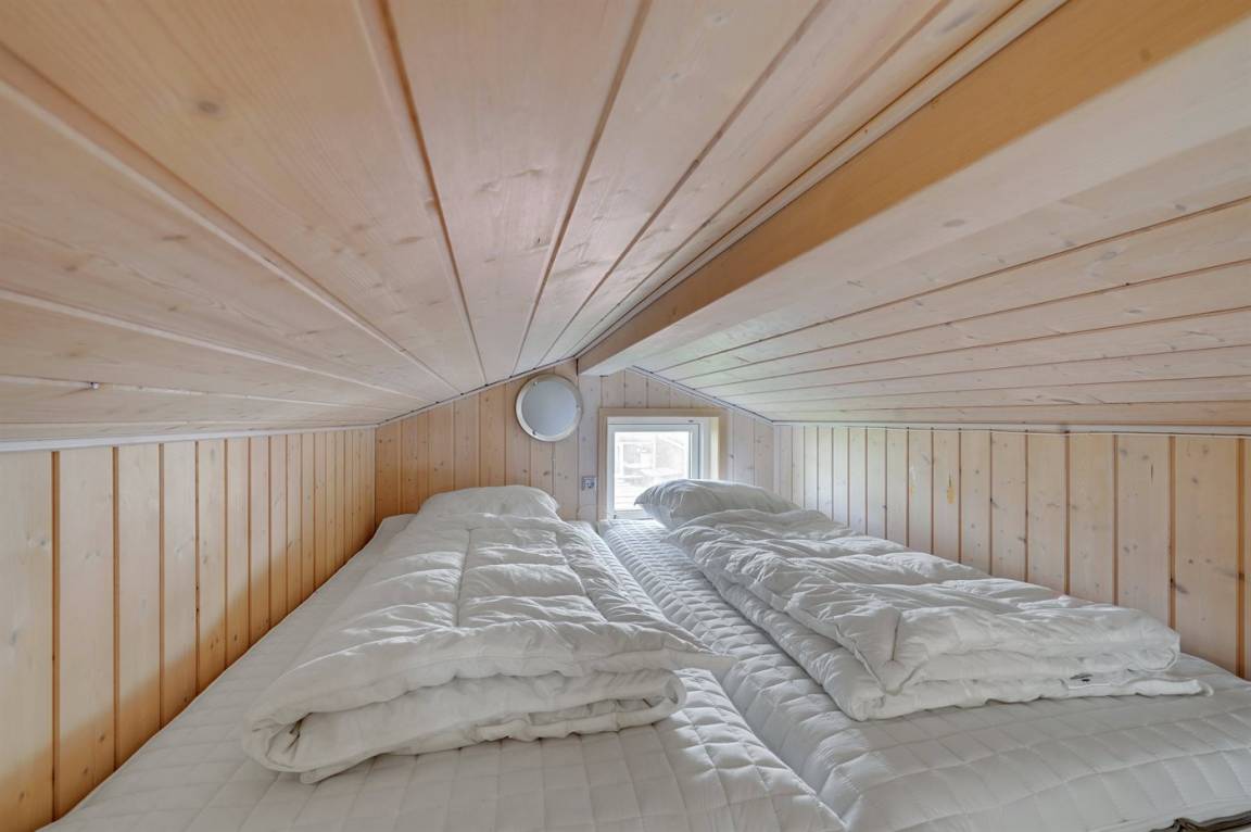 Nur 250 m vom Strand entfernt und im Gehabstand vom gemütlichen Yachthafen liegt dieses schöne Ferienhaus (Doppelhaus) in der Ferienanlage Dageløkke Feriecenter. In der Ferienanlage gibt es kostenlose Aktivitätsmöglichkeiten für die ganze Familie wie z. B. gemeinsame Sporthalle für Aktivitäten wie Fußball, Handball und Badminton, Trimmgeräte, Minigolfanlage sowie Spielplatz mit Hüpfkissen, Trampolin, Sandkasten, Schaukeln, Spielhaus u.a. m. Übrigens: Die 2 Schlafplätze auf Matratzen befinden sich im offenen Obergeschoss des Hauses.